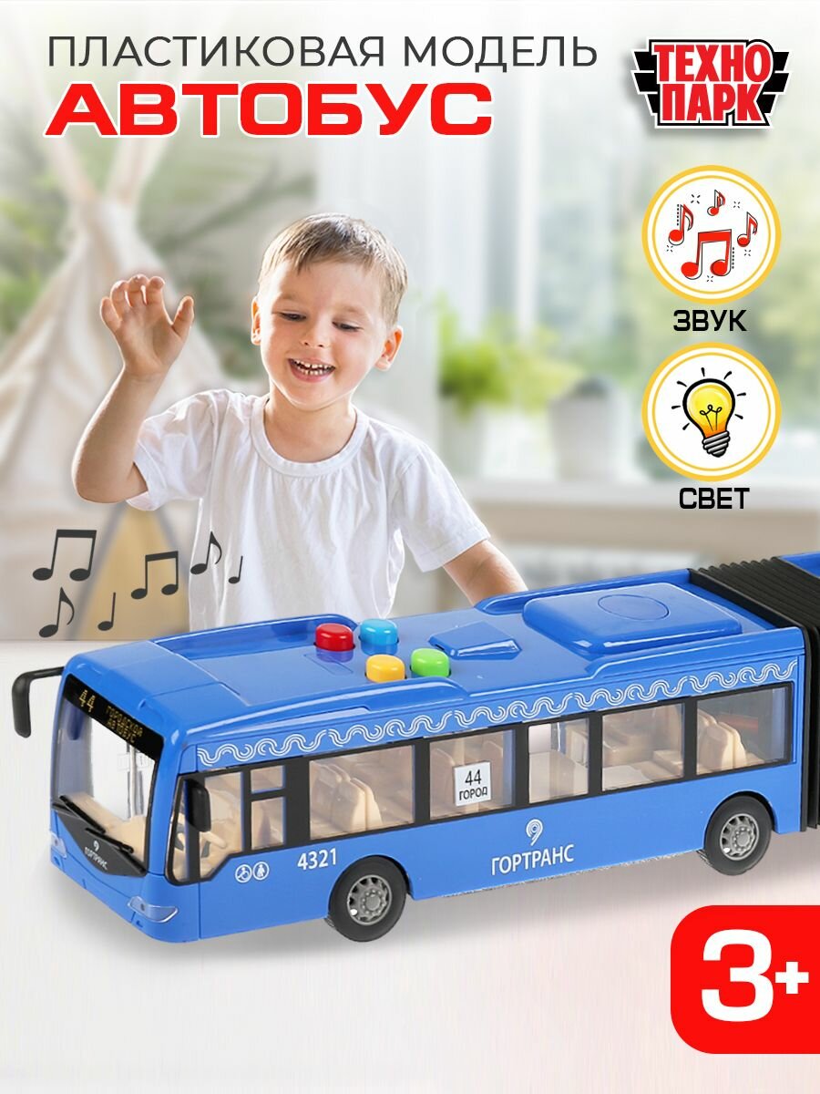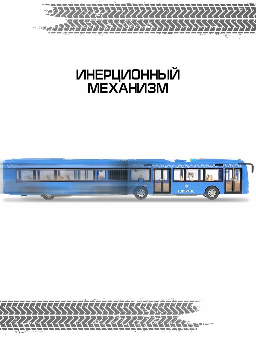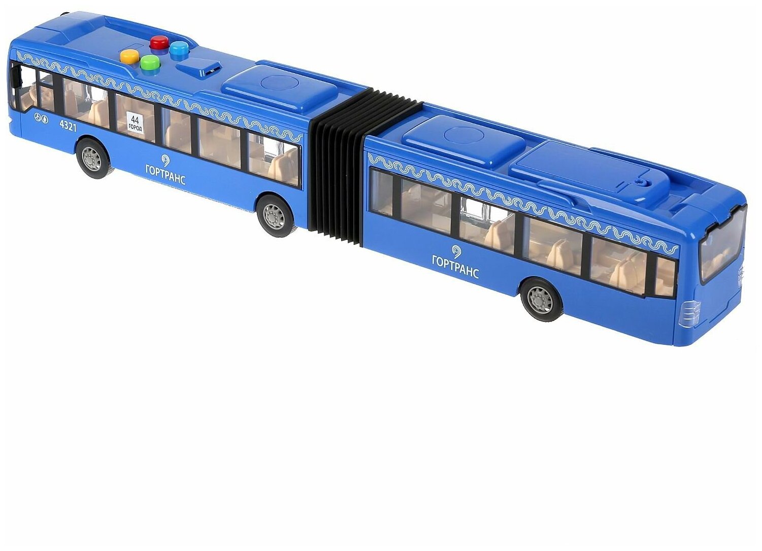 Автобус Технопарк сочлененный, синий, пластиковый, инерционный, свет, звук ВUS-45РL-ВU
