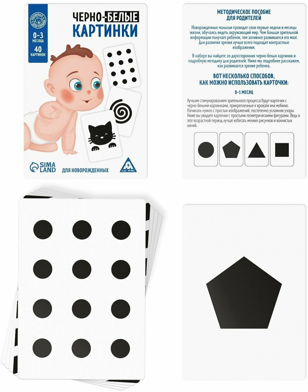 Купить Черно-белые картинки для новорожденных, 20 карт, для детей и малышей от 0 лет
