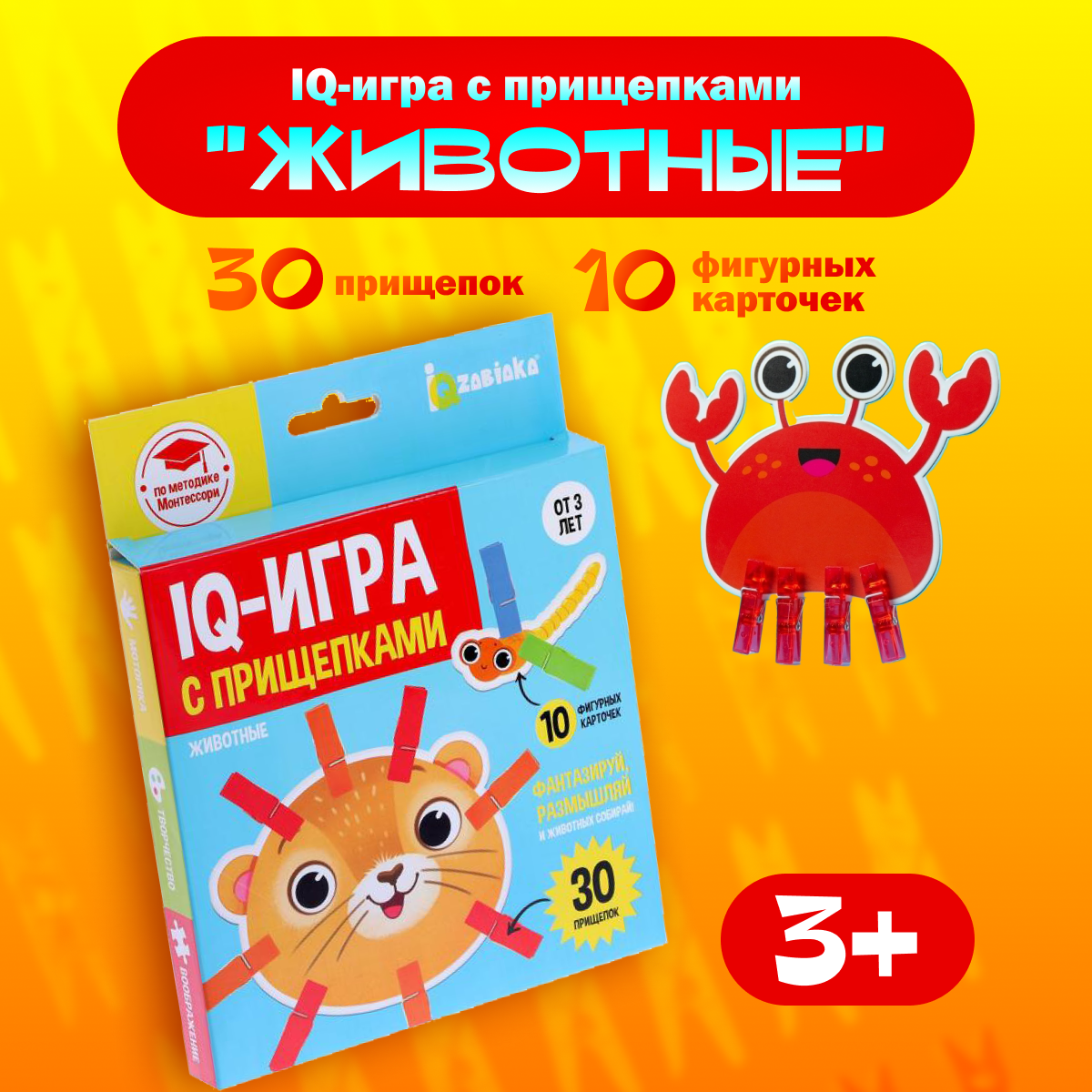 Развивающая IQ-игра с прищепками "Животные", 10 картинок, 30 прищепок интересное: