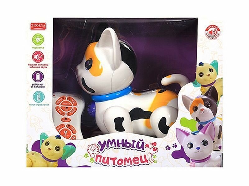 СохранитьZHORYA Робот кот «Умный питомец» ZHORYA, программируемый, на пульте управления, интерактивный: звук, свет, танцующий, музыкальный, на батарейках, на русском языке, белый интересное: