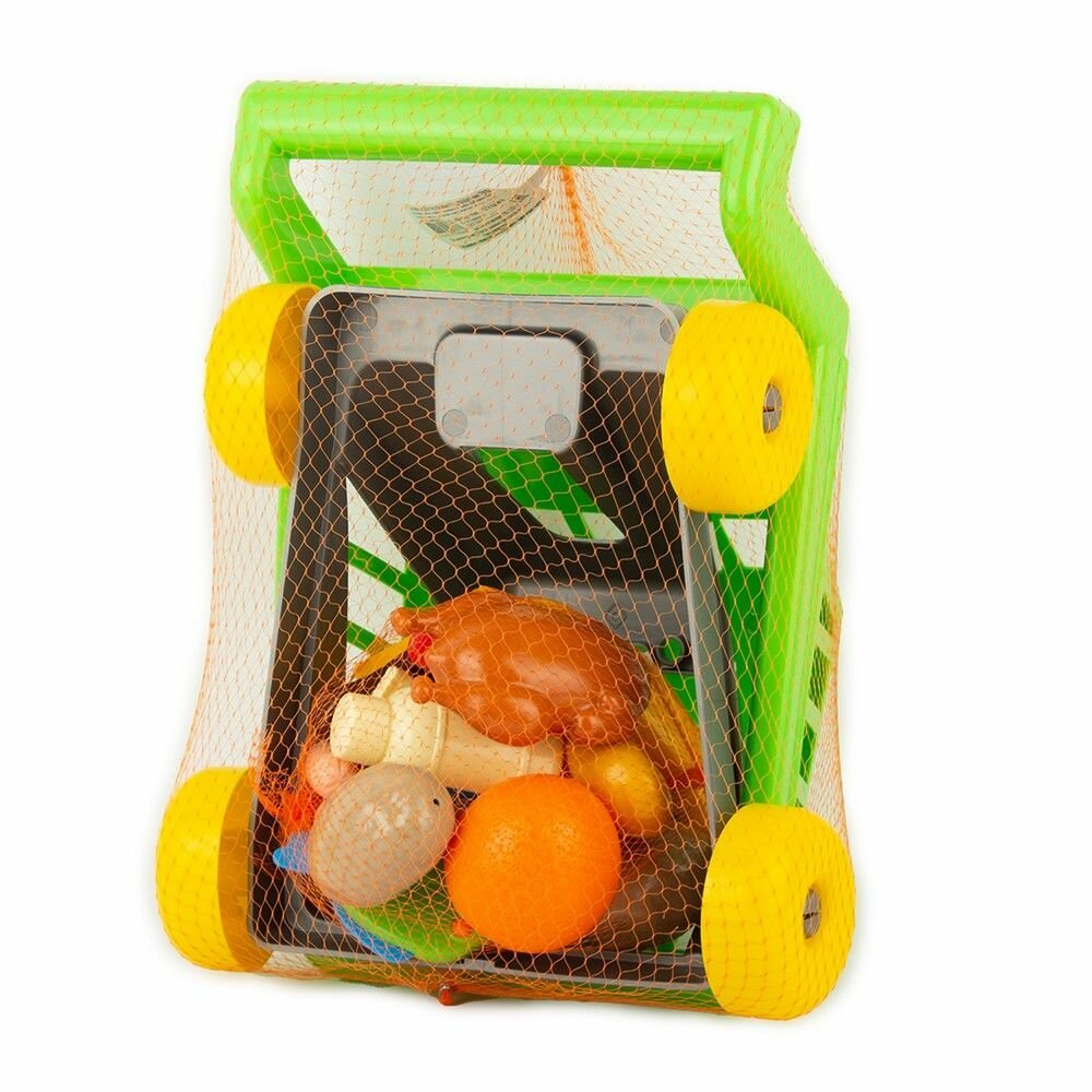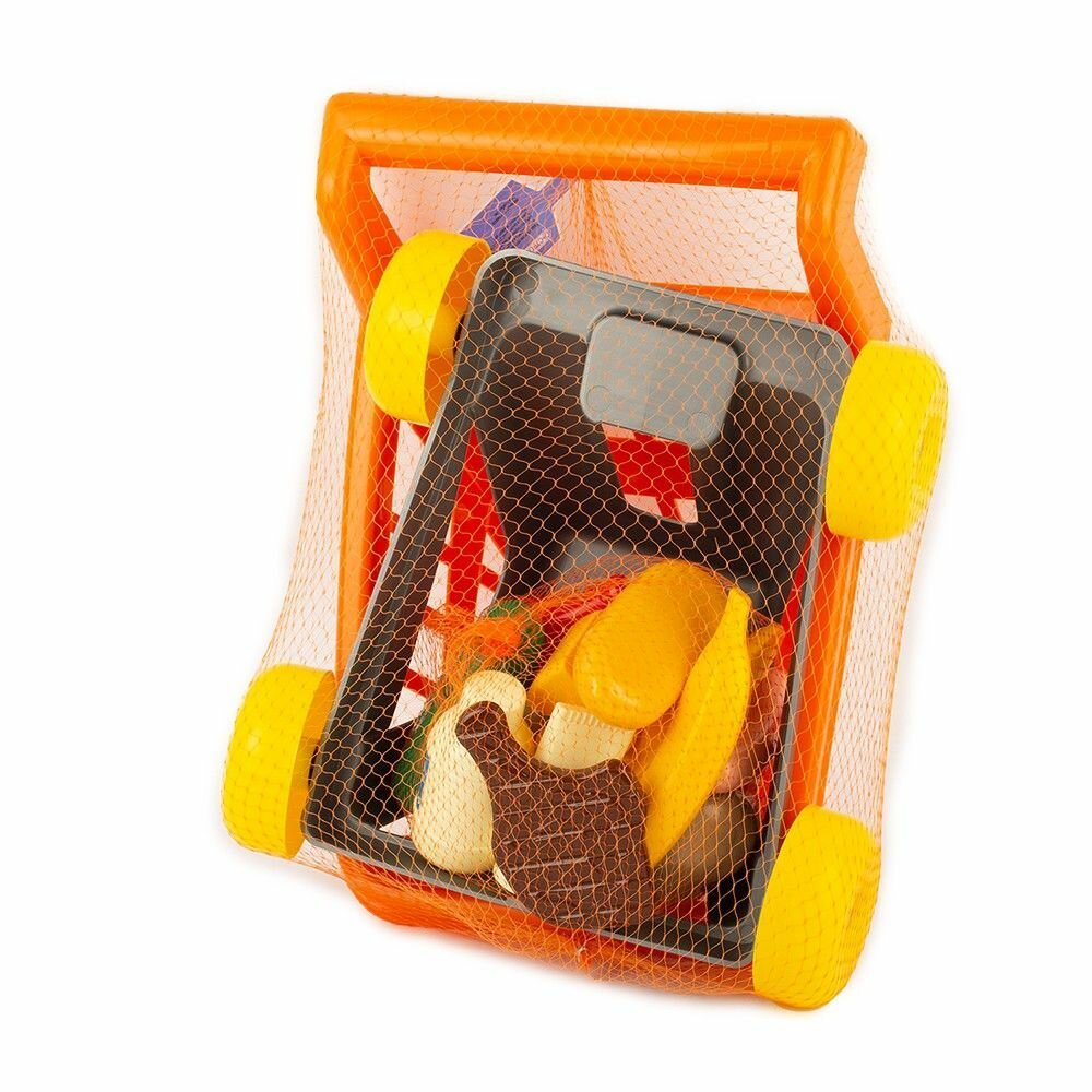 Игровой Набор Тележка для супермаркета с продуктами (19 предметов, пластик, в сетке, от 1, 5 лет) У9