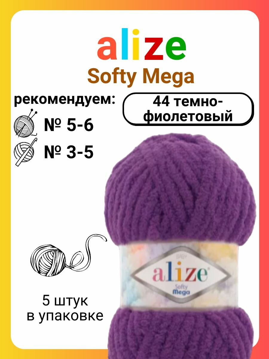 Купить Пряжа для вязания Alize 'Softy Mega', 100г, 70м (100% микрополиэстер) (44 тёмно-фиолетовый), 5 мотков