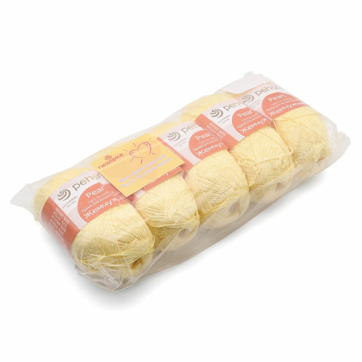 Пряжа для вязания Пехорка 'Жемчужная' 100г, 425м (50% хлопок, 50% вискоза) (53 светло-желтый), 5 мотков