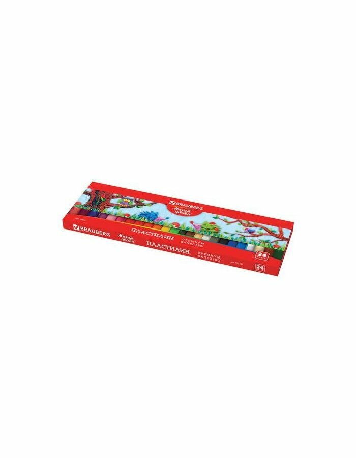 Пластилин для лепки классический для детей Brauberg, набор 24 цвета, 500 г, картонная упаковка, высшее качество, 103351