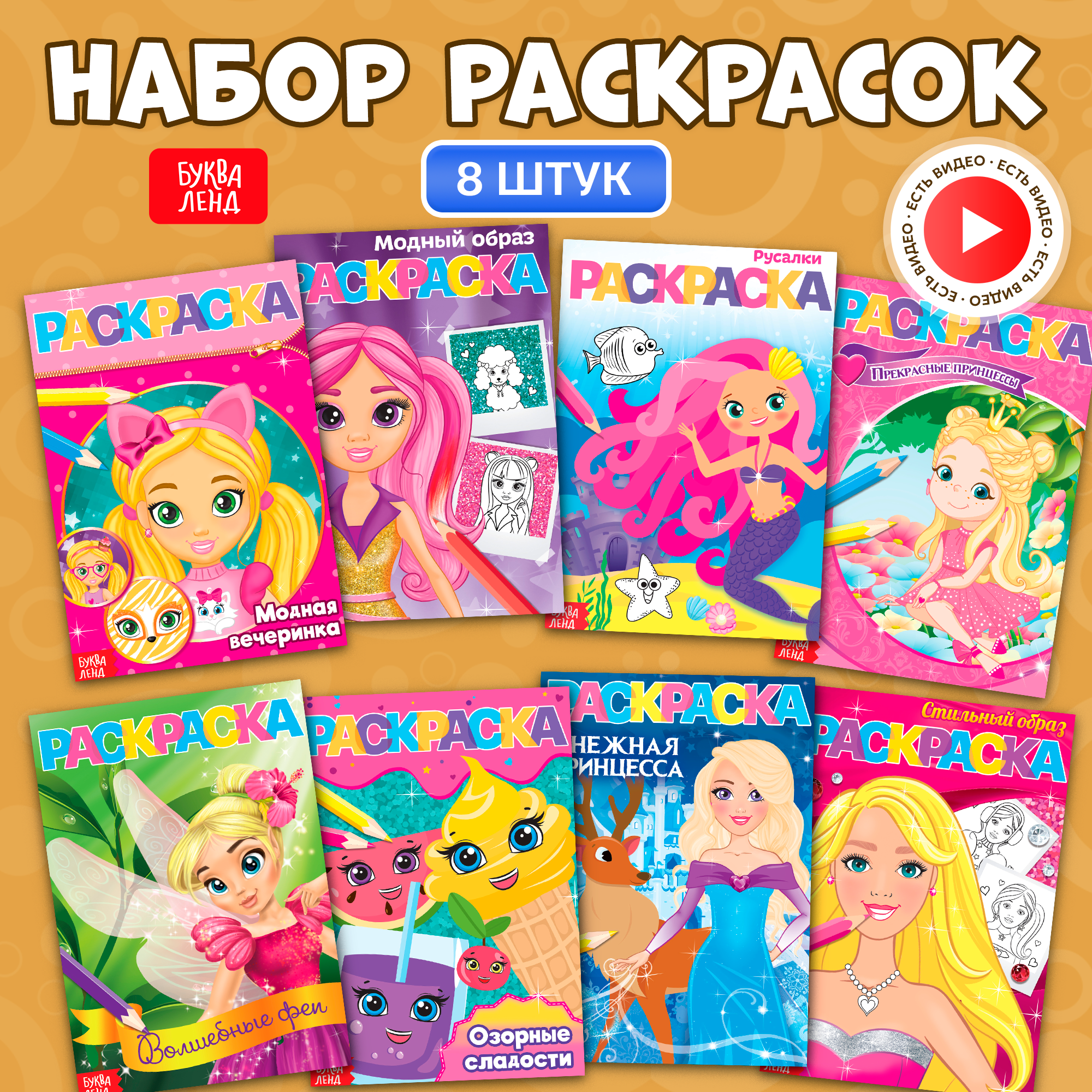 Купить Набор раскрасок для девочек, буква-ленд, 8 штук по 12 страниц, формат А5