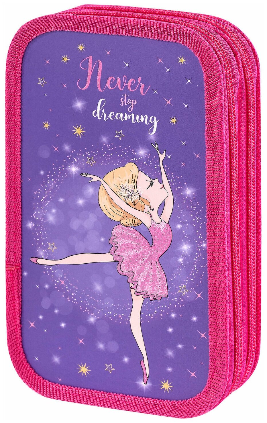 Купить Пенал Юнландия, 2 отделения, ламинированный картон, блестки, 19х11 см, Dancing girl, 270885