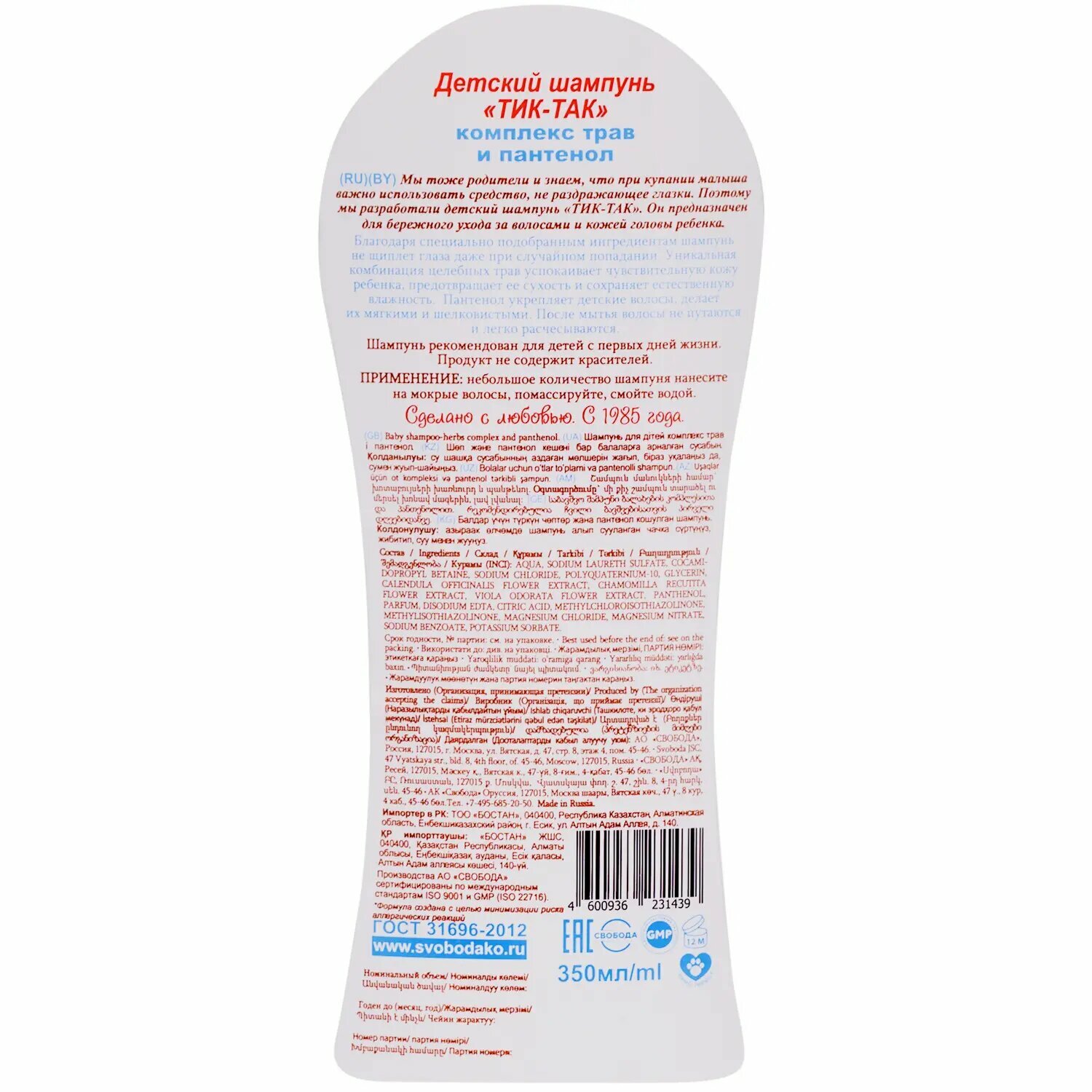 Купить Шампунь детский Свобода "Тик-Так" комплекс трав и пантенол, 350 мл (4600936231439)