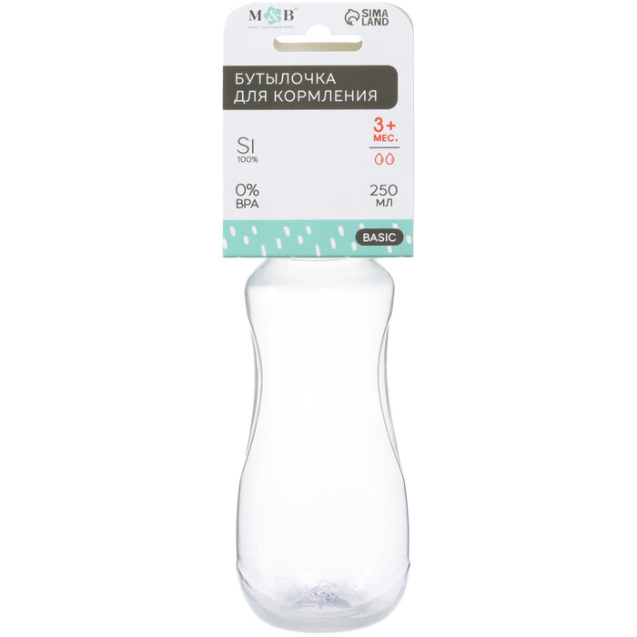 Бутылочка для кормления малыша M&B, классическое горло, от 3 мес, 250 мл, приталенная, цвет белый