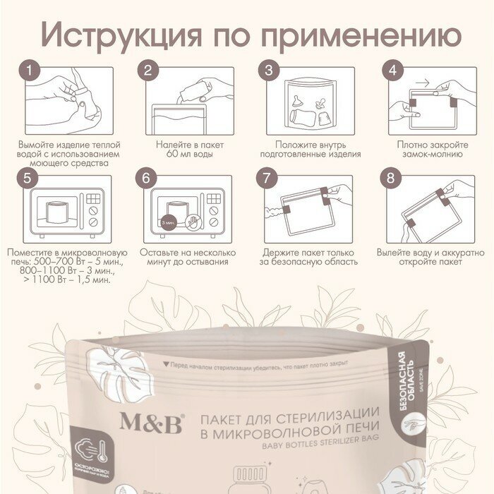Пакеты для стерилизации бутылочек в микроволновой печи, набор 5 шт. интересное: