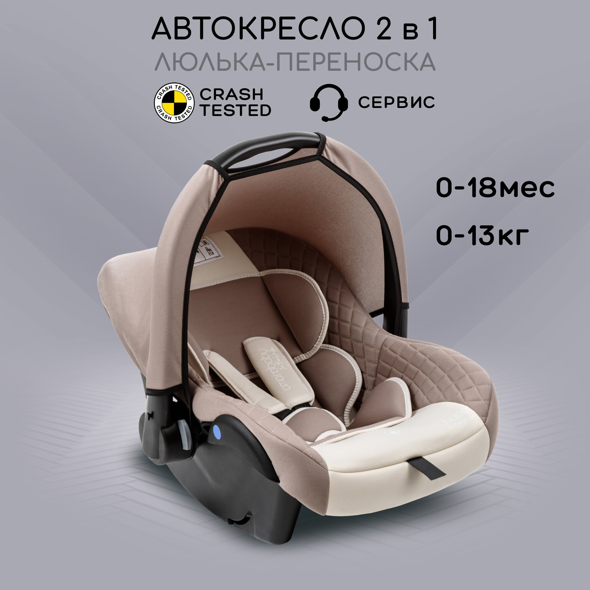 Автокресло детское AMAROBABY Baby comfort, группа 0+, (светло-бежевый)