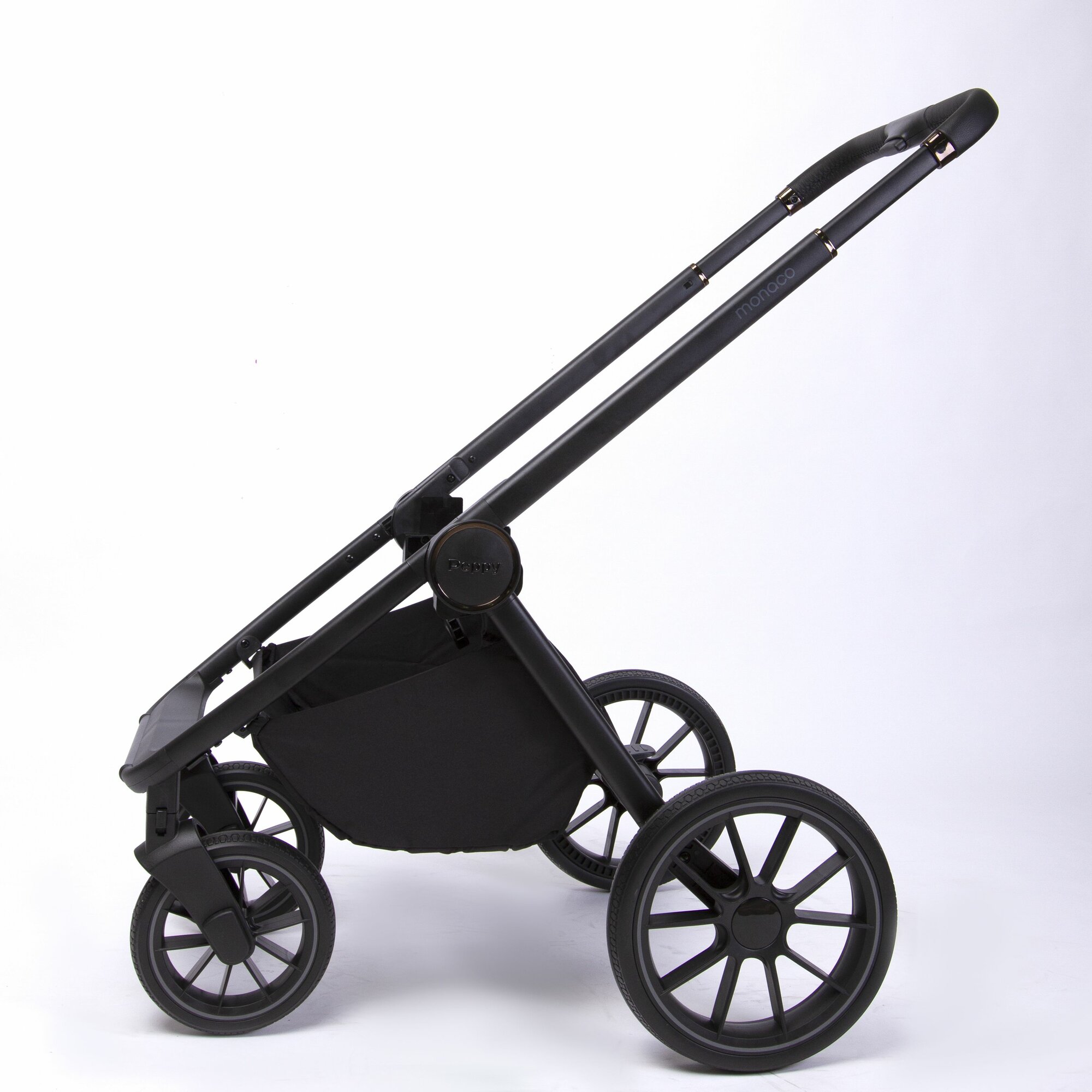 Коляска детская Peppy Monaco 2 в 1 GP Rose Black (черный), рама черн-золотая, шлифованный алюминий