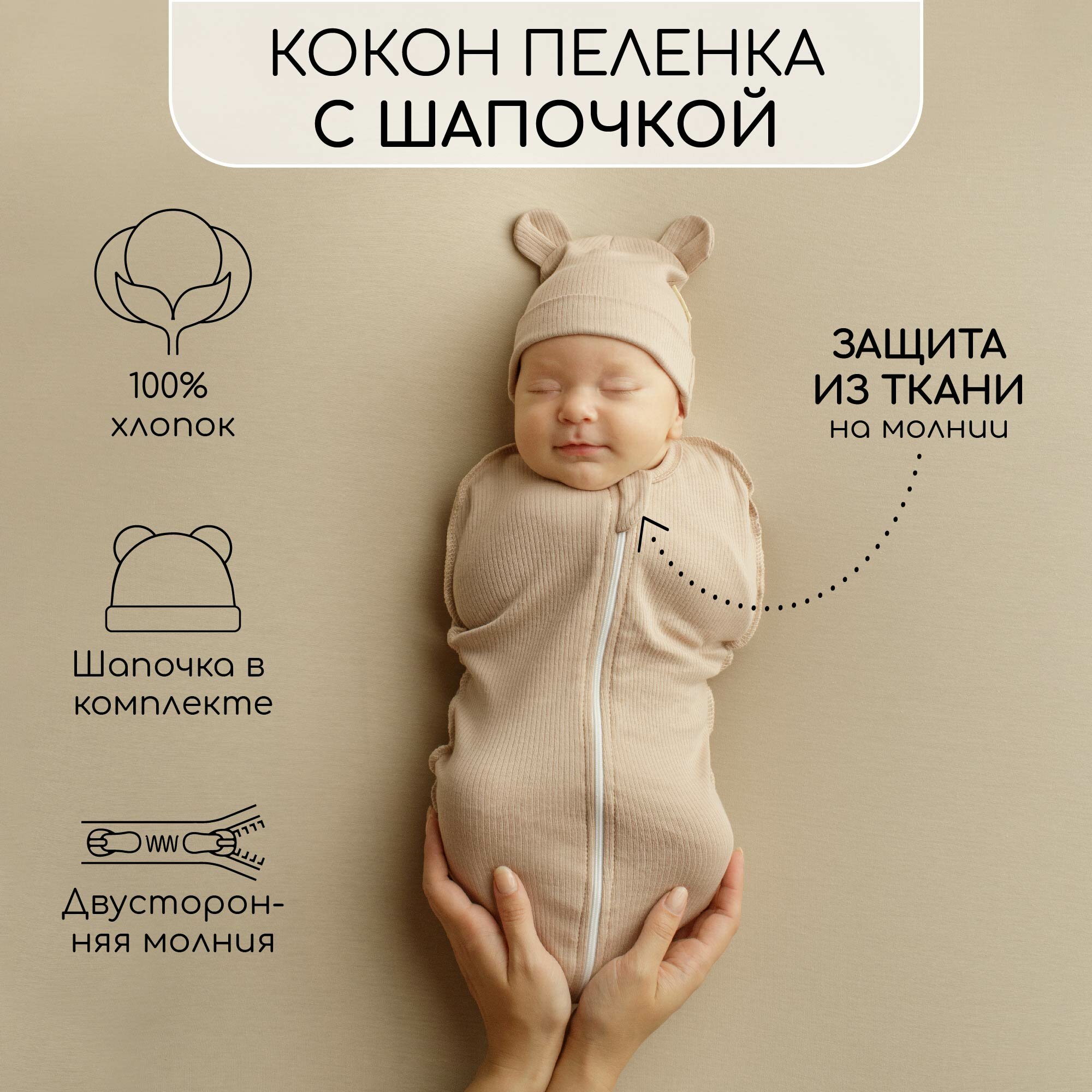 Пеленка-кокон на молнии с шапочкой Amarobaby Fashion, бежевый, размер 56-68