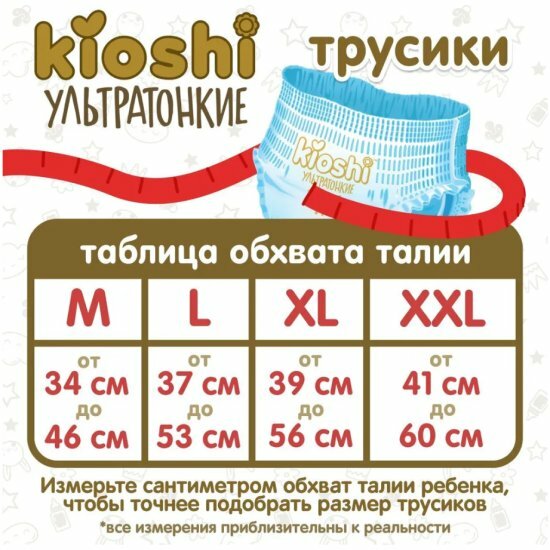 Трусики-подгузники KIOSHI "Ультратонкие", 28шт, для мальчиков и девочек, XXXL