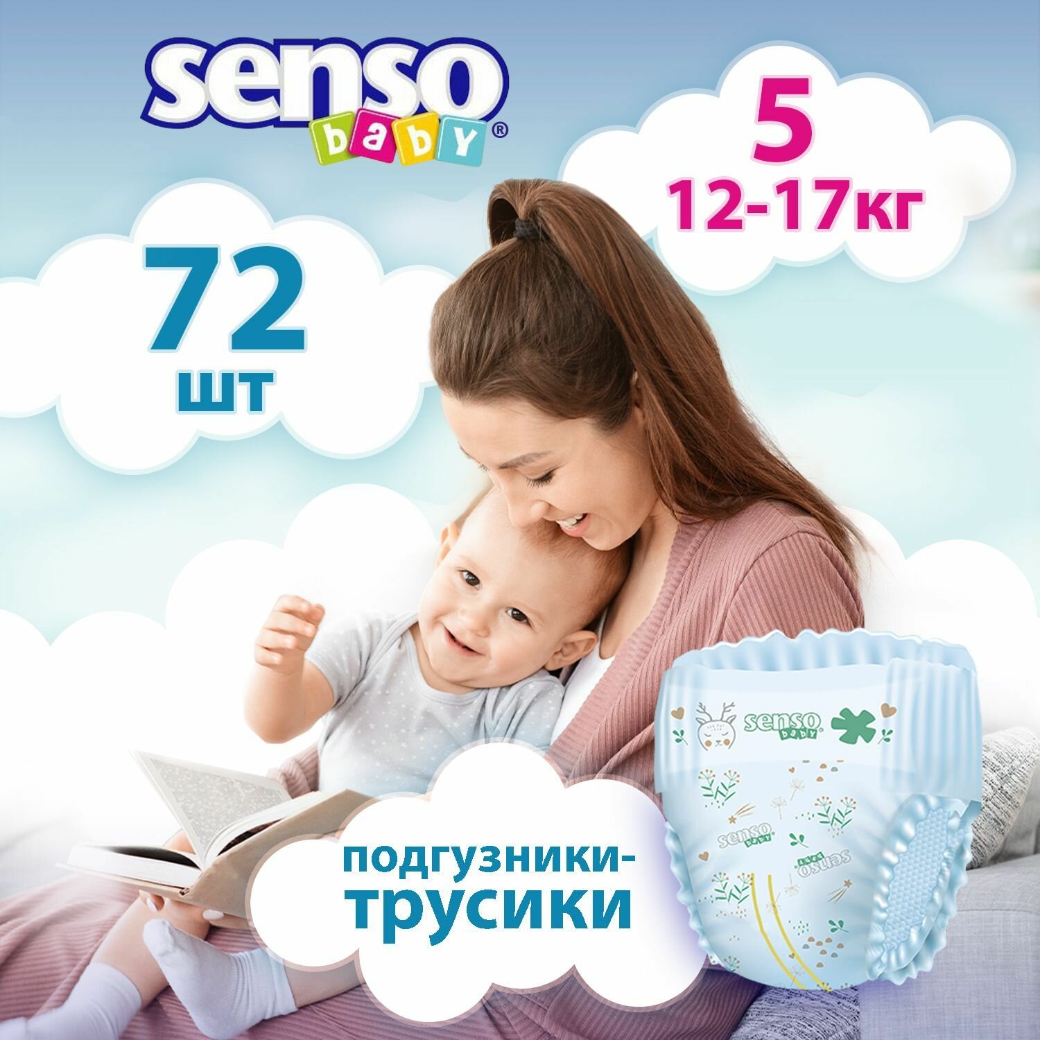 Купить Подгузники трусики Senso Baby детские, 5 размер XL, весовая группа 12-17 кг, дневные и ночные, 72 шт, молочный
