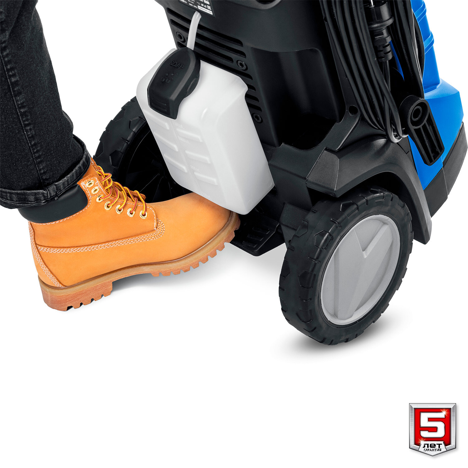 | Особенности | автонамотка сетевого шнура, бесщеточный двигатель, забор воды из емкости, использование моющего средства, регулировка давления на корпусе, регулировка давления на ручке, фильтр грубой очистки |
