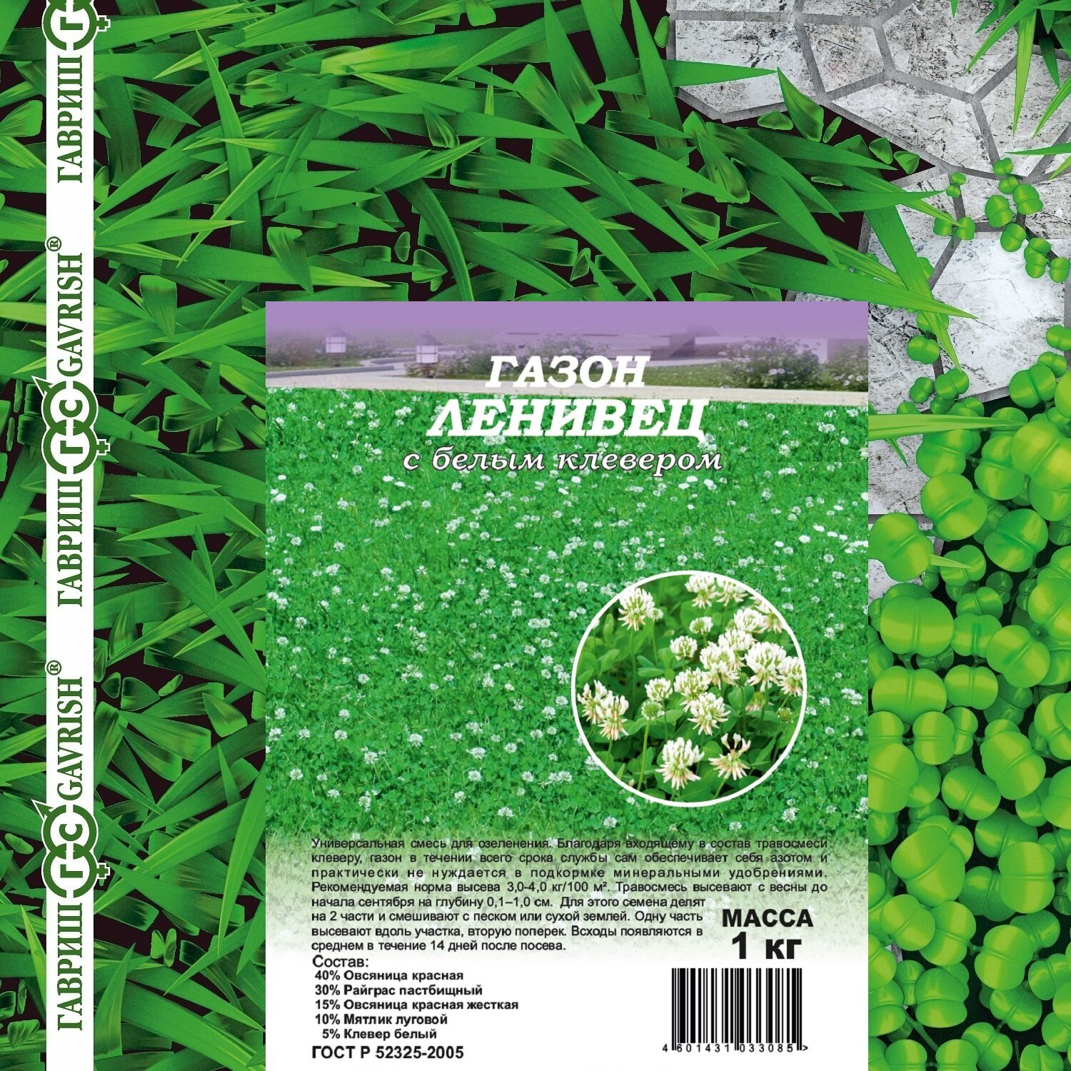 Семена Газон Ленивец с белым клевером, 1,0кг, Гавриш интересное: