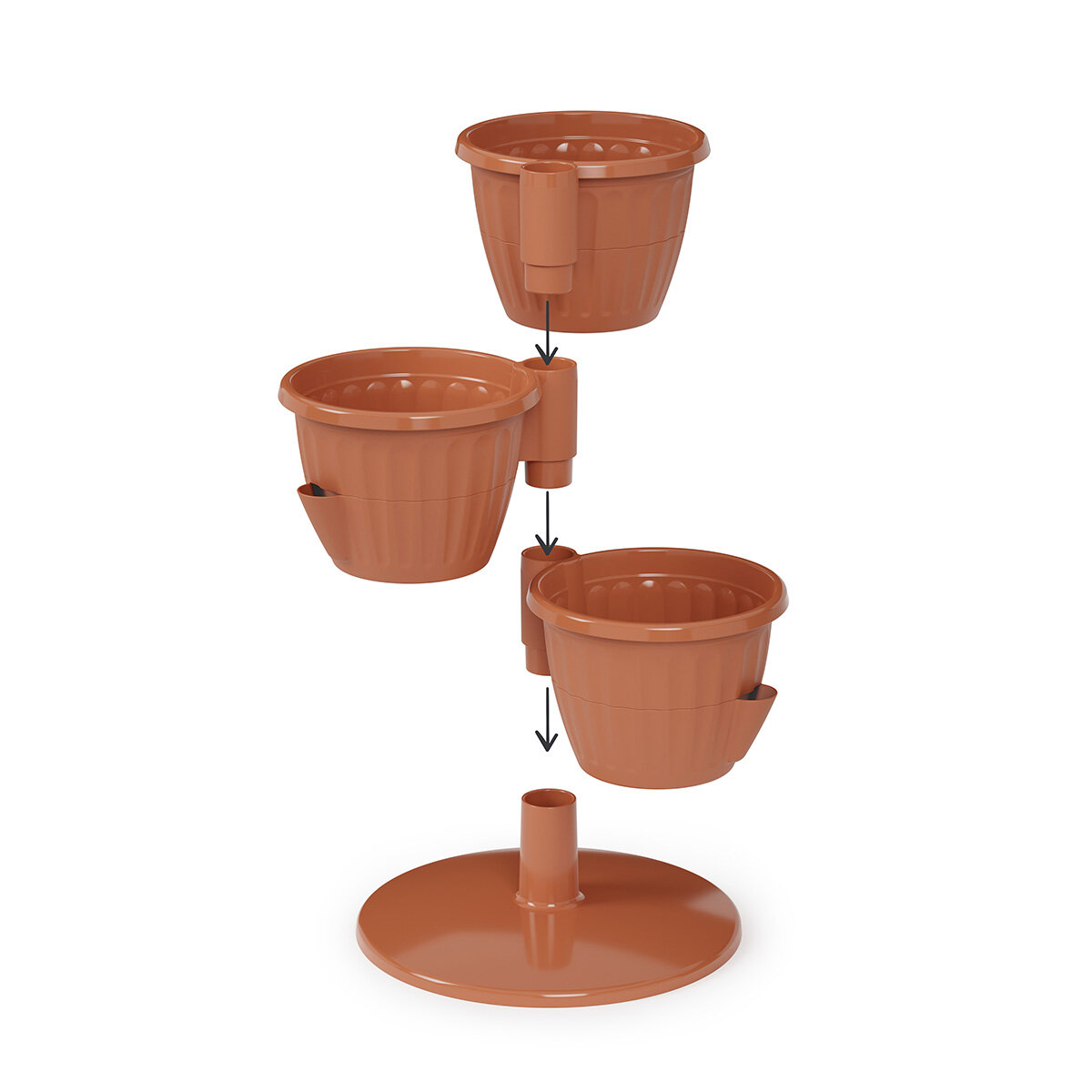 | Дополнительная информация | Тип товара: Настольное кашпо для живых цветов Конфигурация: 3 кашпо с прикорневым поливом на подставке Назначение товара: Для дома, сада, дачи, офиса, ресторана, кафе Серия: Каскад |