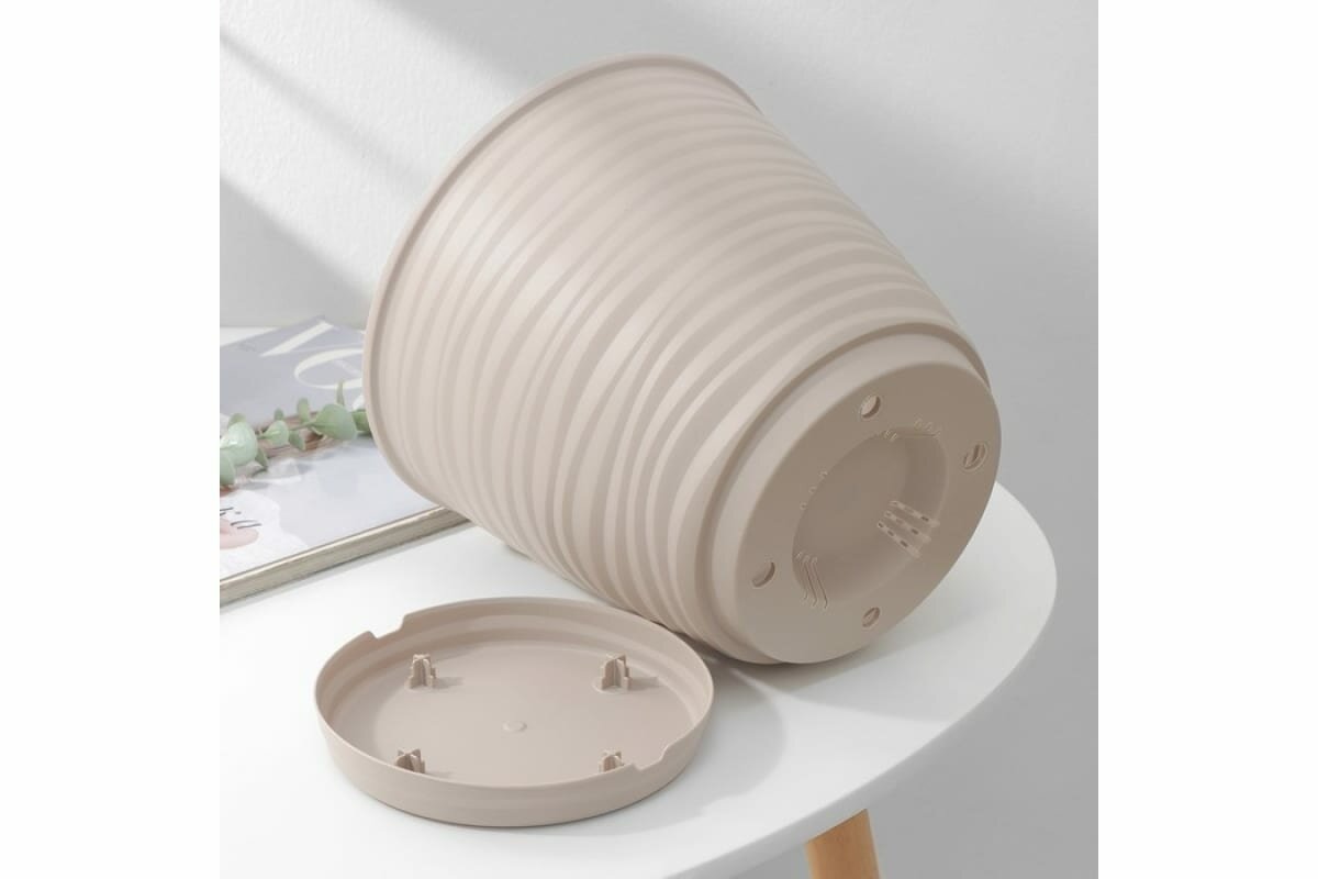 Горшок для цветов пластиковый 9,1л d-26,7см "Saffron" с поддоном бежевый интересное: