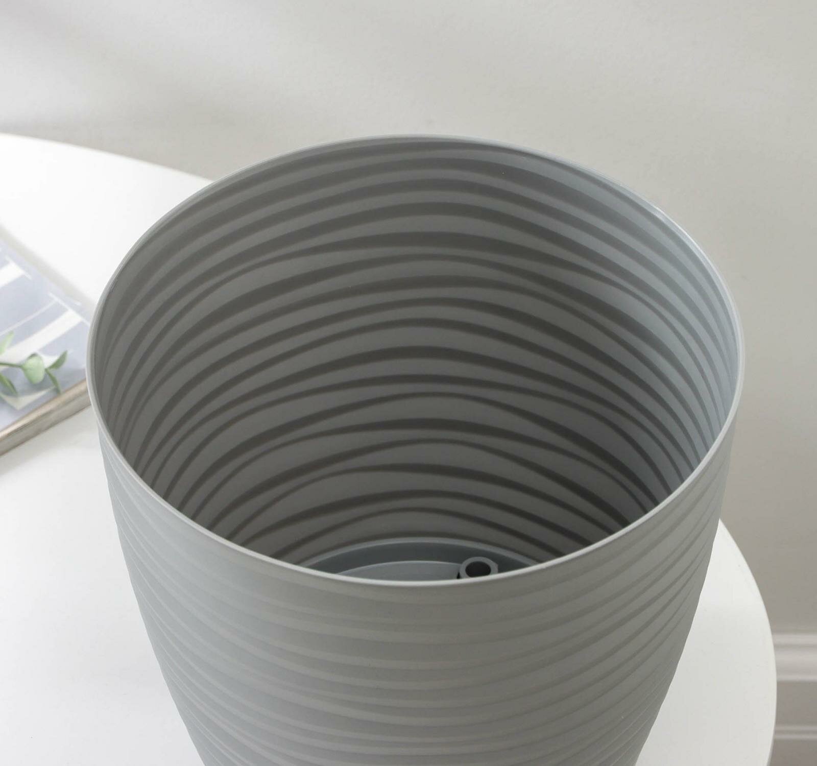 Кашпо IDEA Дюна, керамика/пластик, французское, серое, с поддоном
