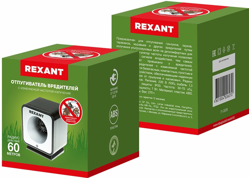 Ультразвуковой отпугиватель REXANТ от вредителей, грызунов, насекомых на радиус 60 м2 интересное: