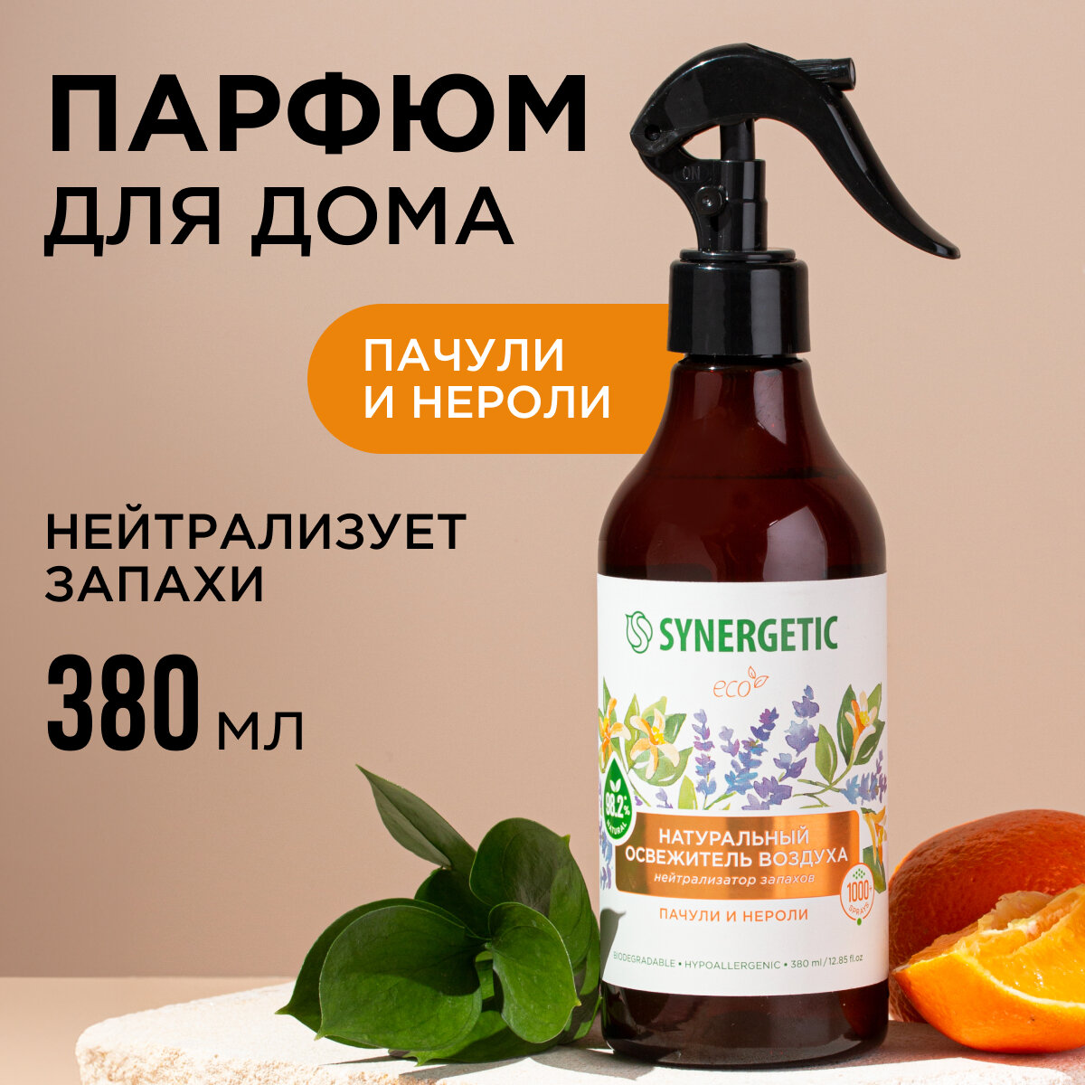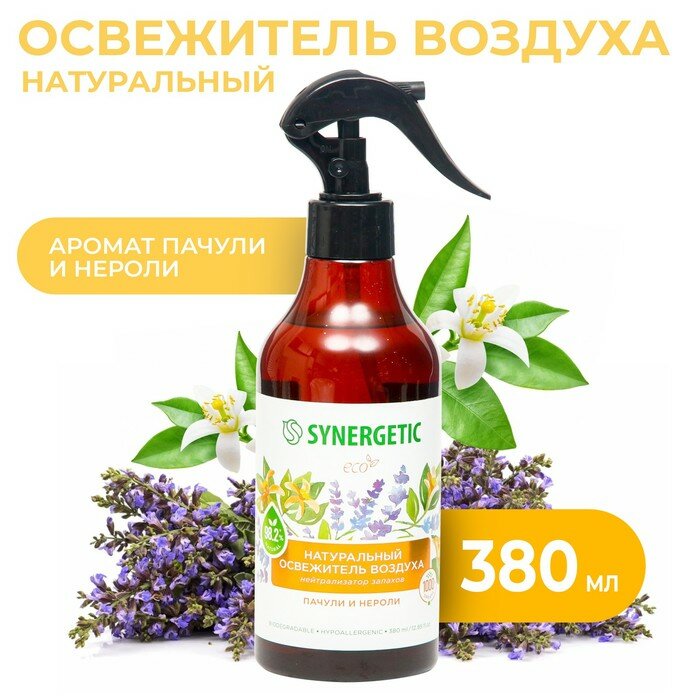 Ароматический гипоаллергенный освежитель воздуха SYNERGETIC "Пачули и нероли" на водной основе, натуральный нейтрализатор воздуха 380мл интересное: