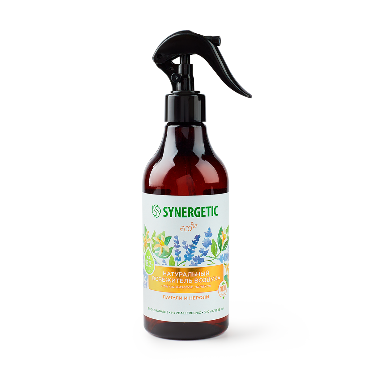 Купить Ароматический гипоаллергенный освежитель воздуха SYNERGETIC "Пачули и нероли" на водной основе, натуральный нейтрализатор воздуха 380мл