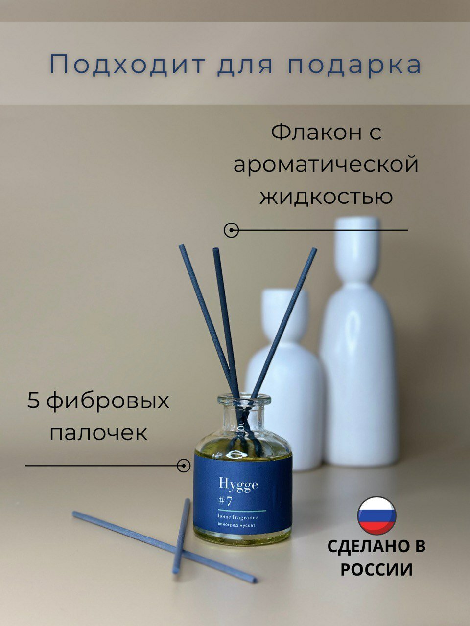 | Подробная комплектация | ароматический диффузор, фибровые палочки (5 шт) |