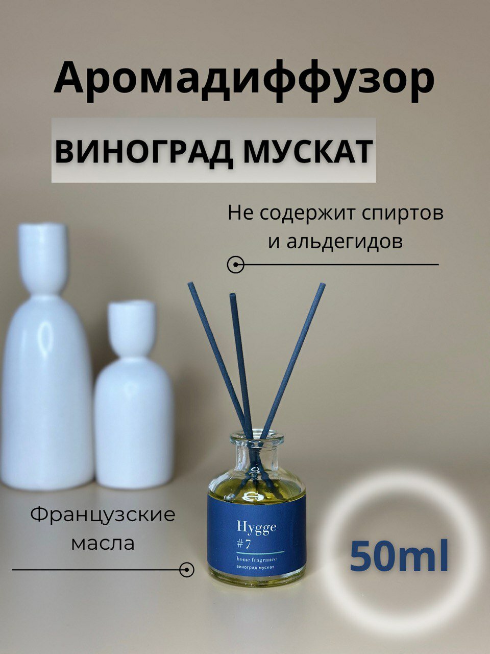 Комплект 5 штук, Аромадиффузор с палочками Hygge #7 Виноград мускат 50 мл АР 100-024