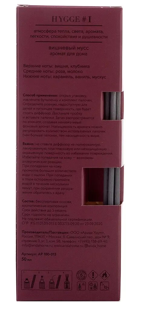 СохранитьArida Home диффузор Hygge #1 Вишневый мусс, 50 мл, , интересное: