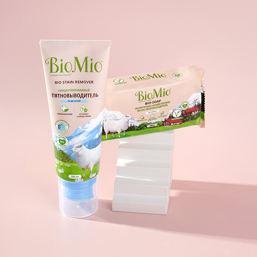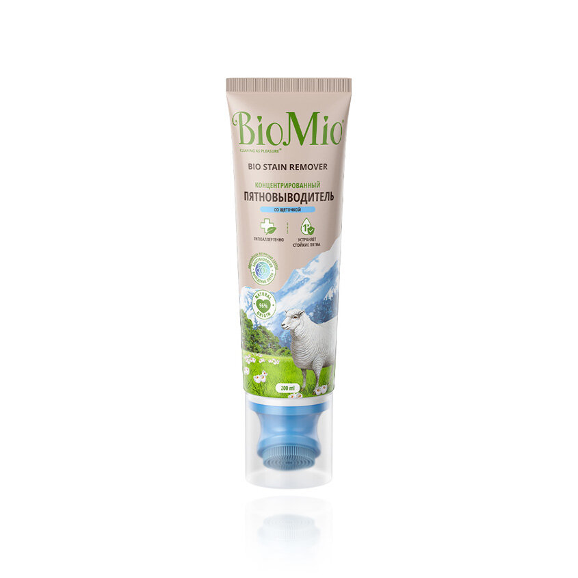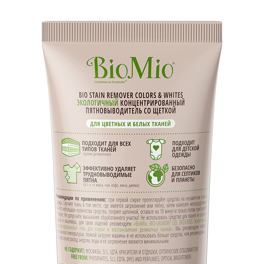 Экологичный концентрированный пятновыводитель со щеткой BioMio для цветных и белых тканей. Без запаха. 200мл интересное: