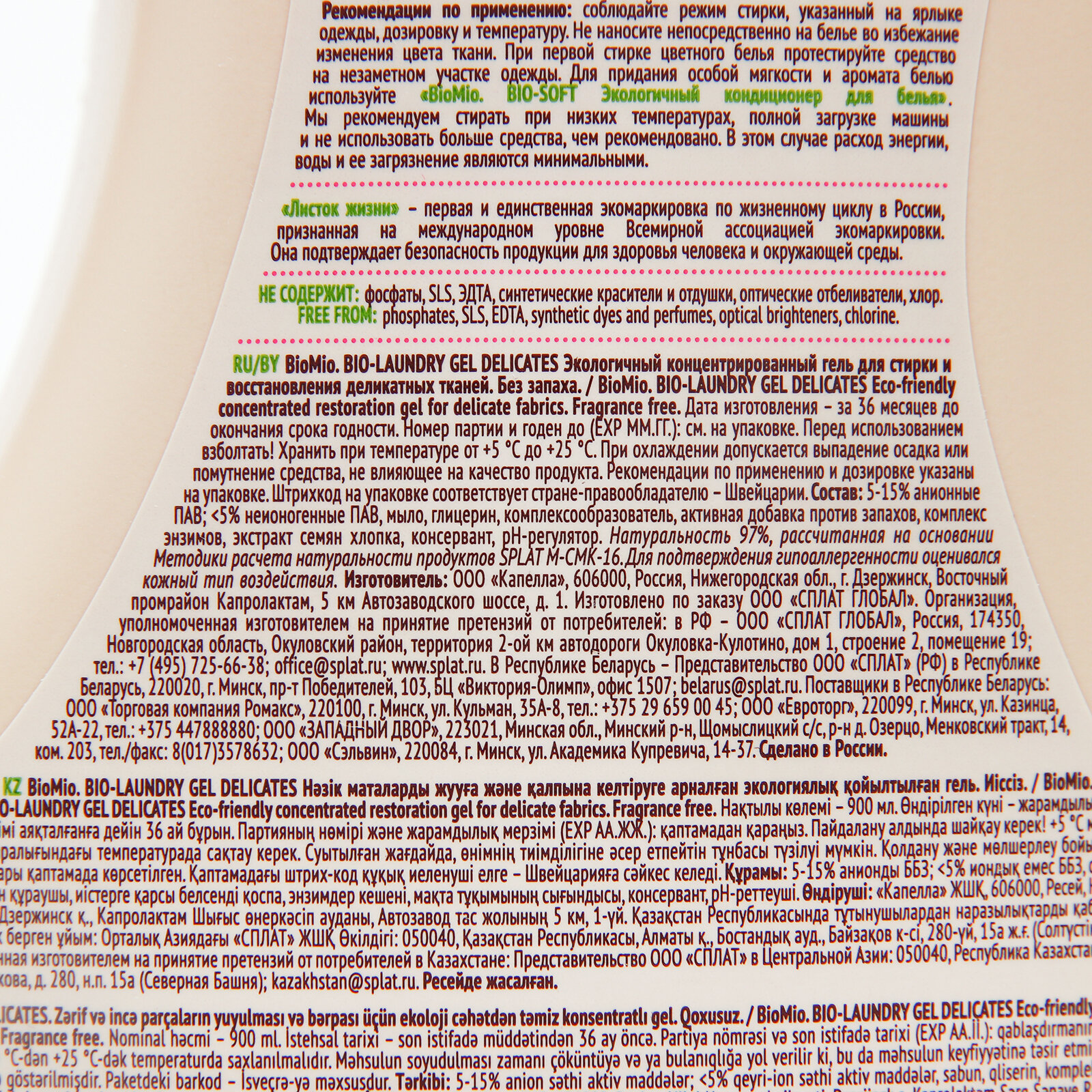 | Содержит | ПАВ / глицерин / комплексоны / консерванты / энзимы |