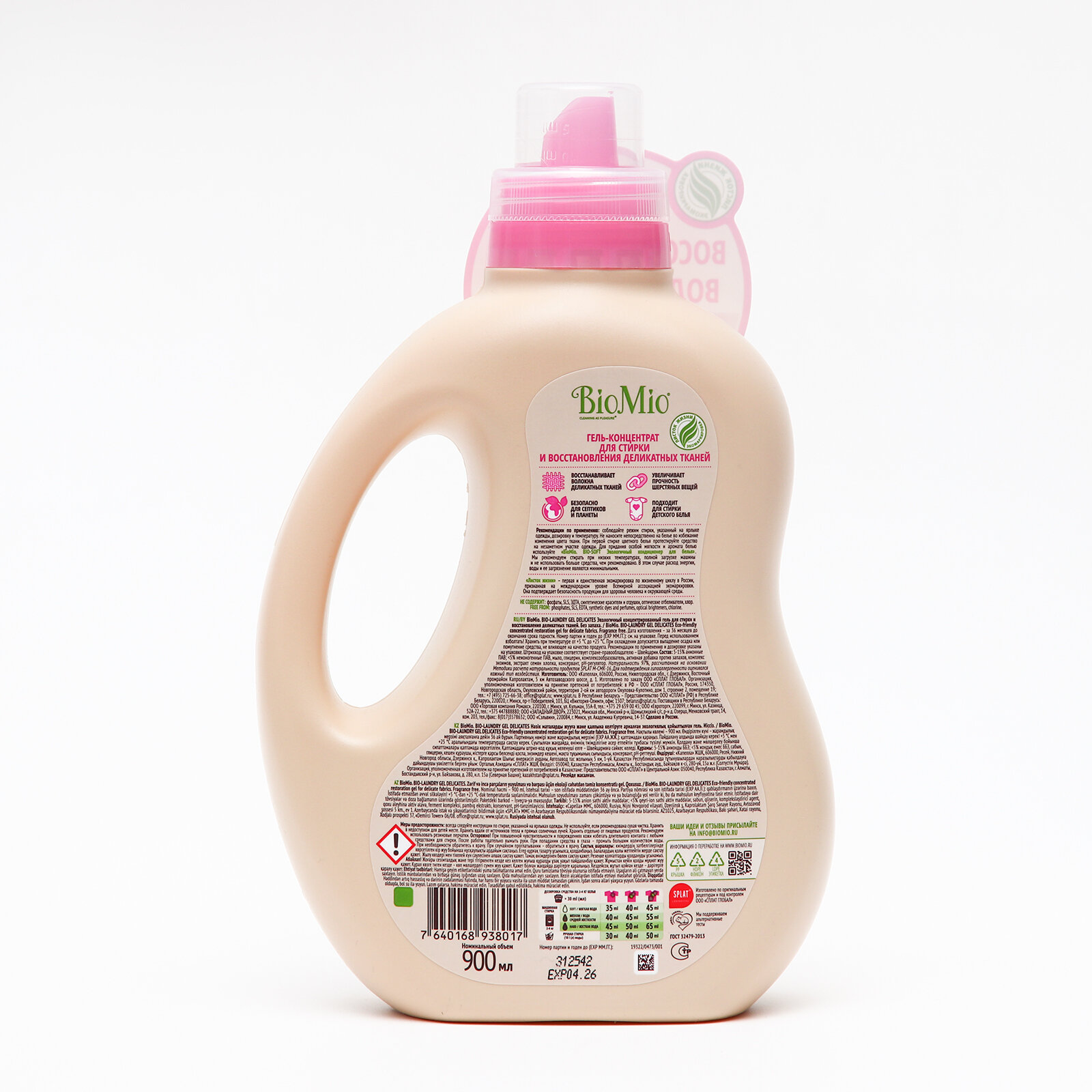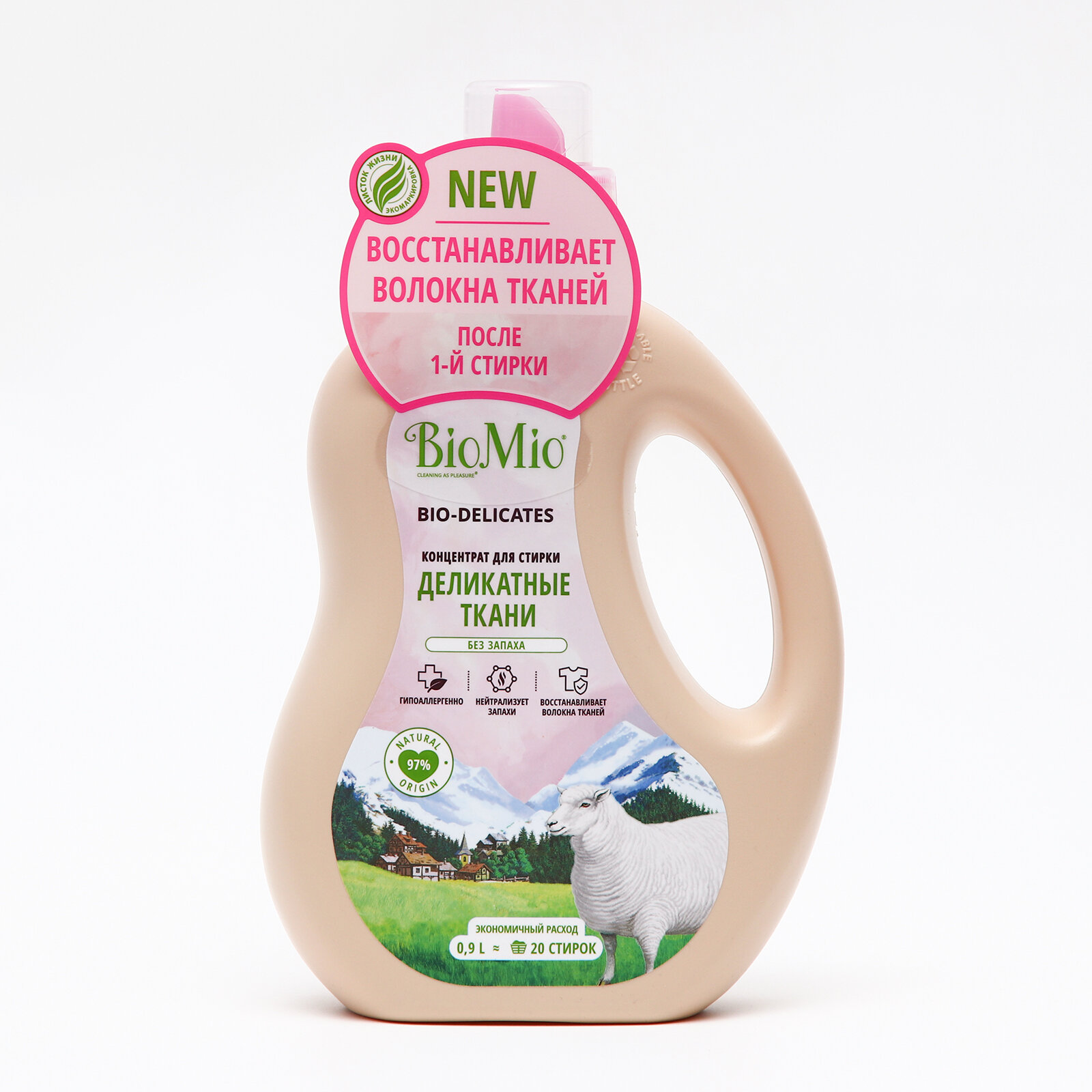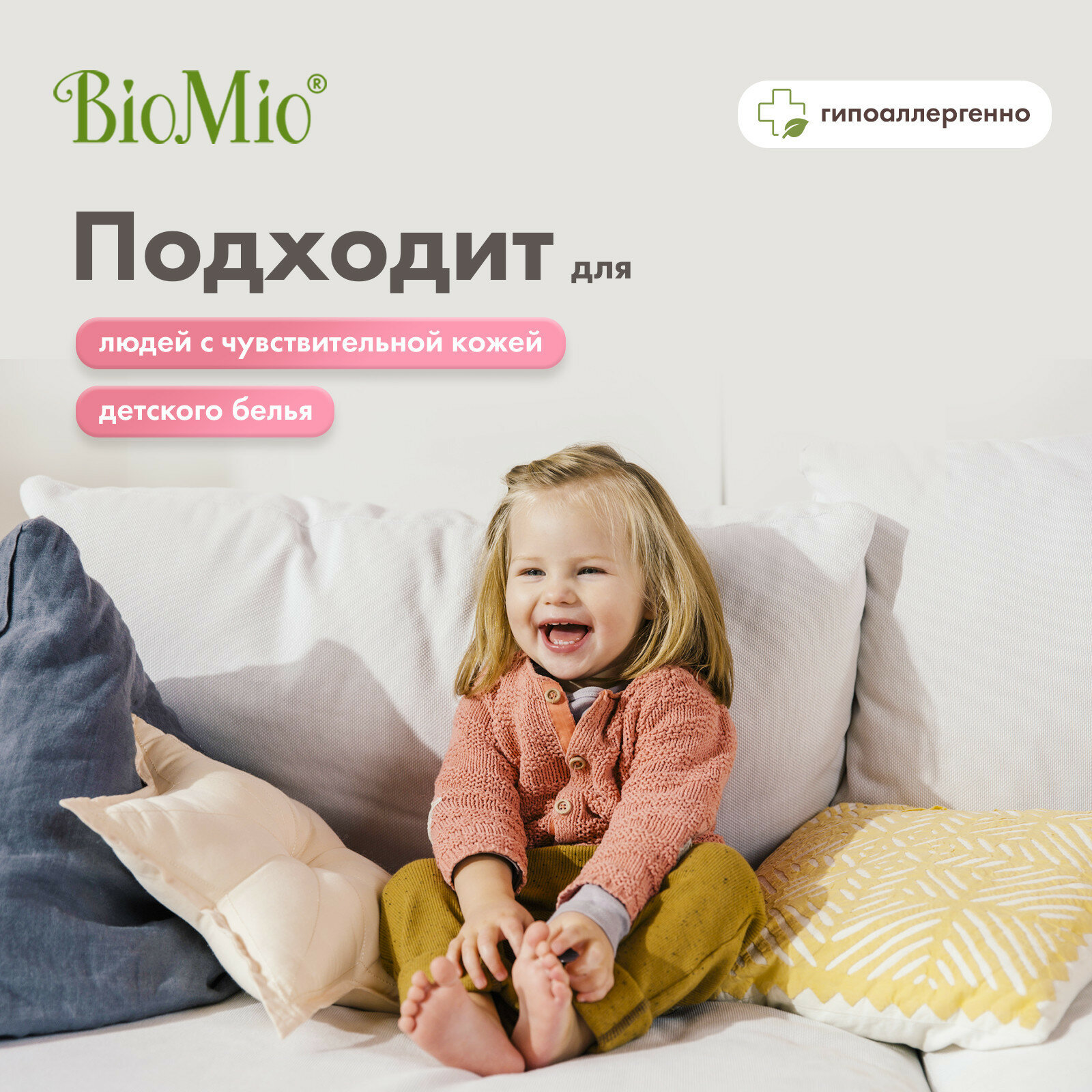 Экологичный гель для стирки деликатных тканей BioMio, жидкий порошок концентрат, без запаха, 900 мл интересное: