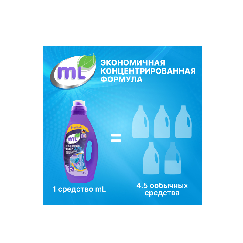 Гель для стирки цветного и белого белья mL EXTRA CLEAN, универсальный концентрат, эффективная формула, 1.8 л