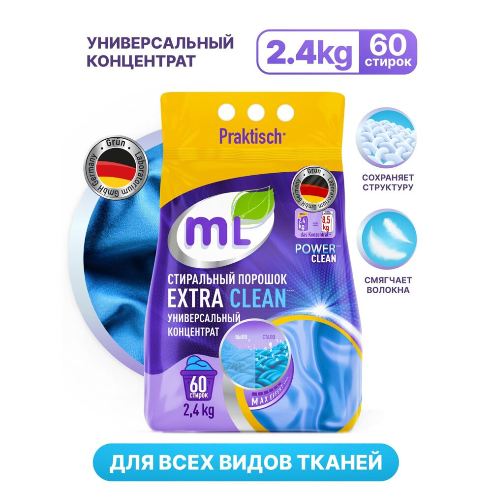 Стиральный порошок для цветного mL EXTRA COLOR, универсальный концентрат, формула защиты цвета, 2.4 кг