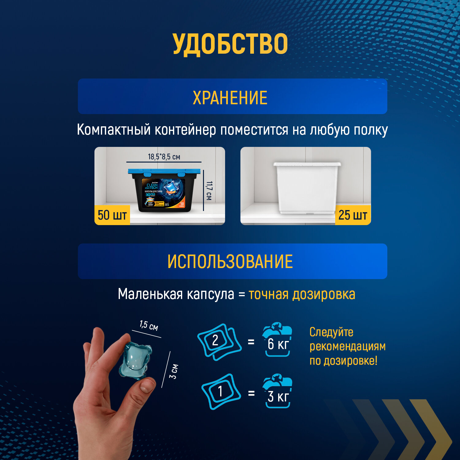 Капсулы для стирки Salton CleanTech, для любых режимов стирки, 50 шт.