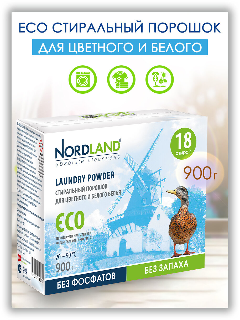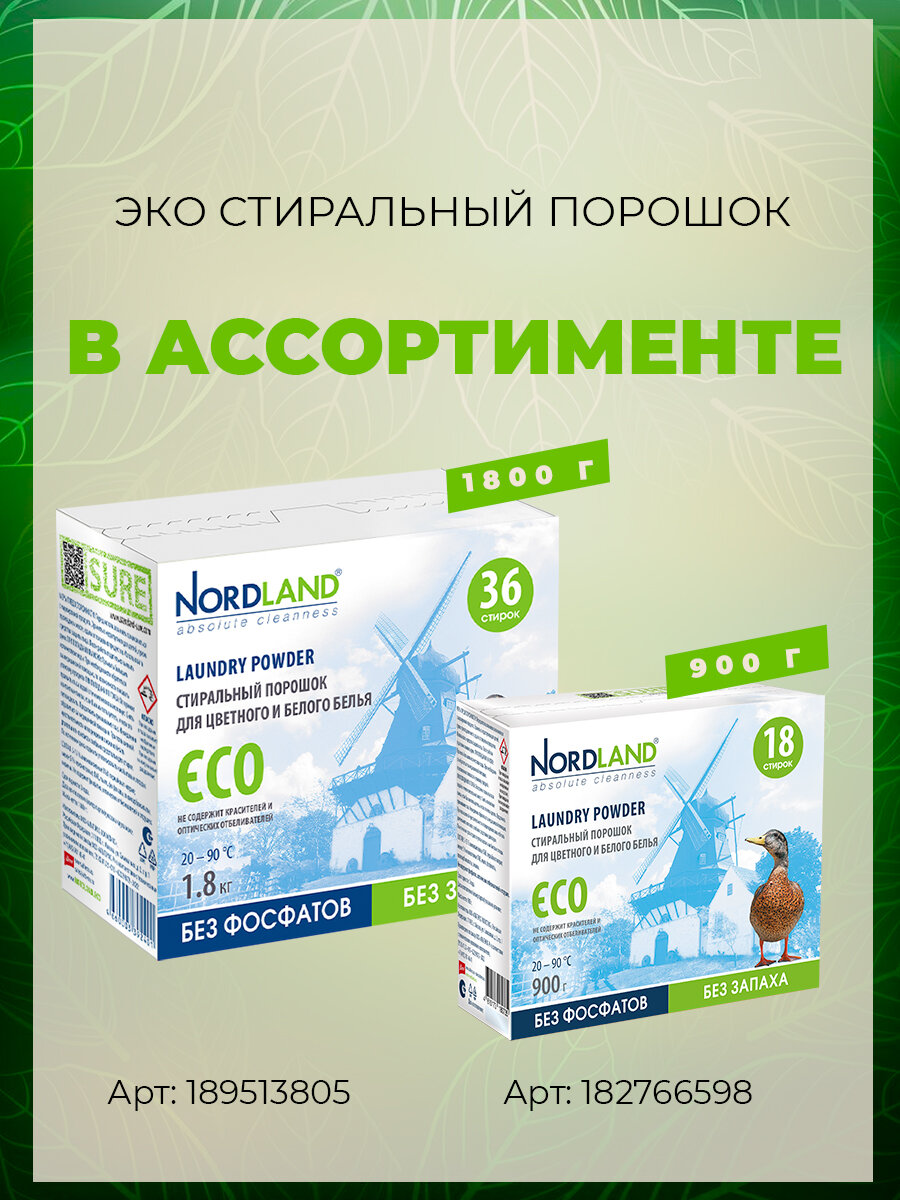 Стиральный порошок Nordland, 900 г, для цветного и белого белья, ECO интересное: