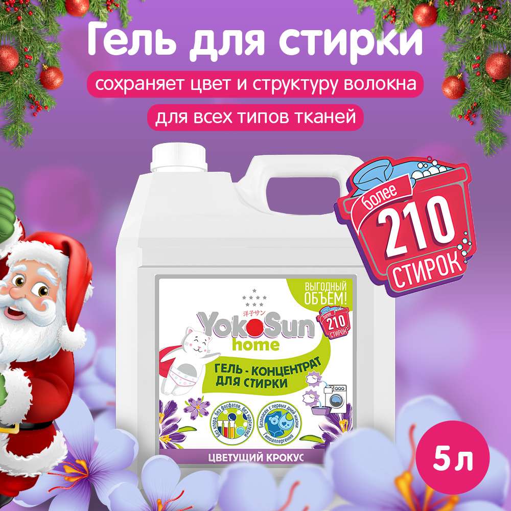 Гель для стирки белья YokoSun "Цветущий крокус" 5л, универсальный, концентрированный жидкий порошок, детский, гипоаллергенный