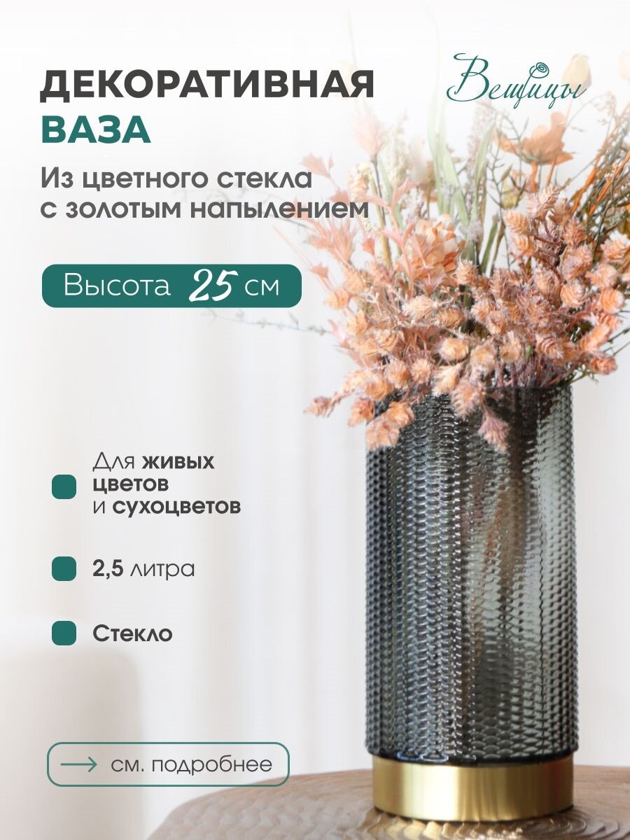 Ваза декоративная Вещицы 25 см / Для декора и цветов / Цвет серый