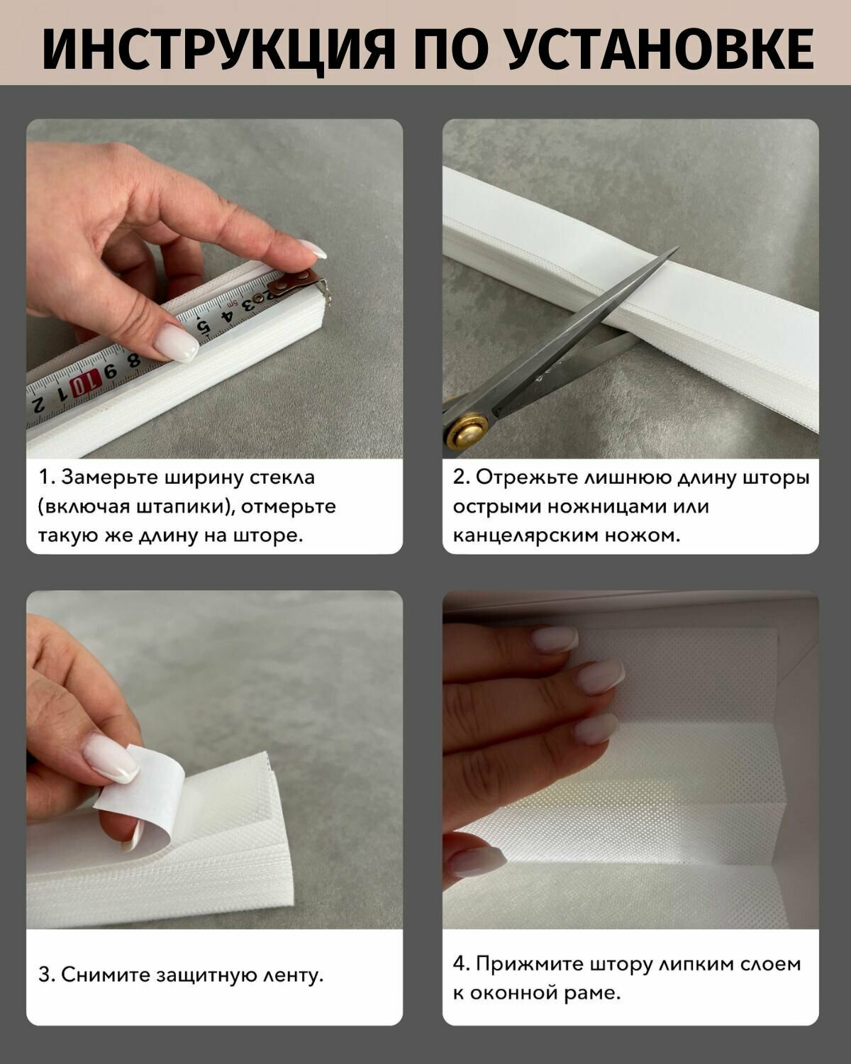 Жалюзи блэкаут на окна самоклеящиеся белый 90х180, шторы плиссе на липучке, жалюзи самоклеющиеся, тканевые жалюзи, горизонтальные жалюзи