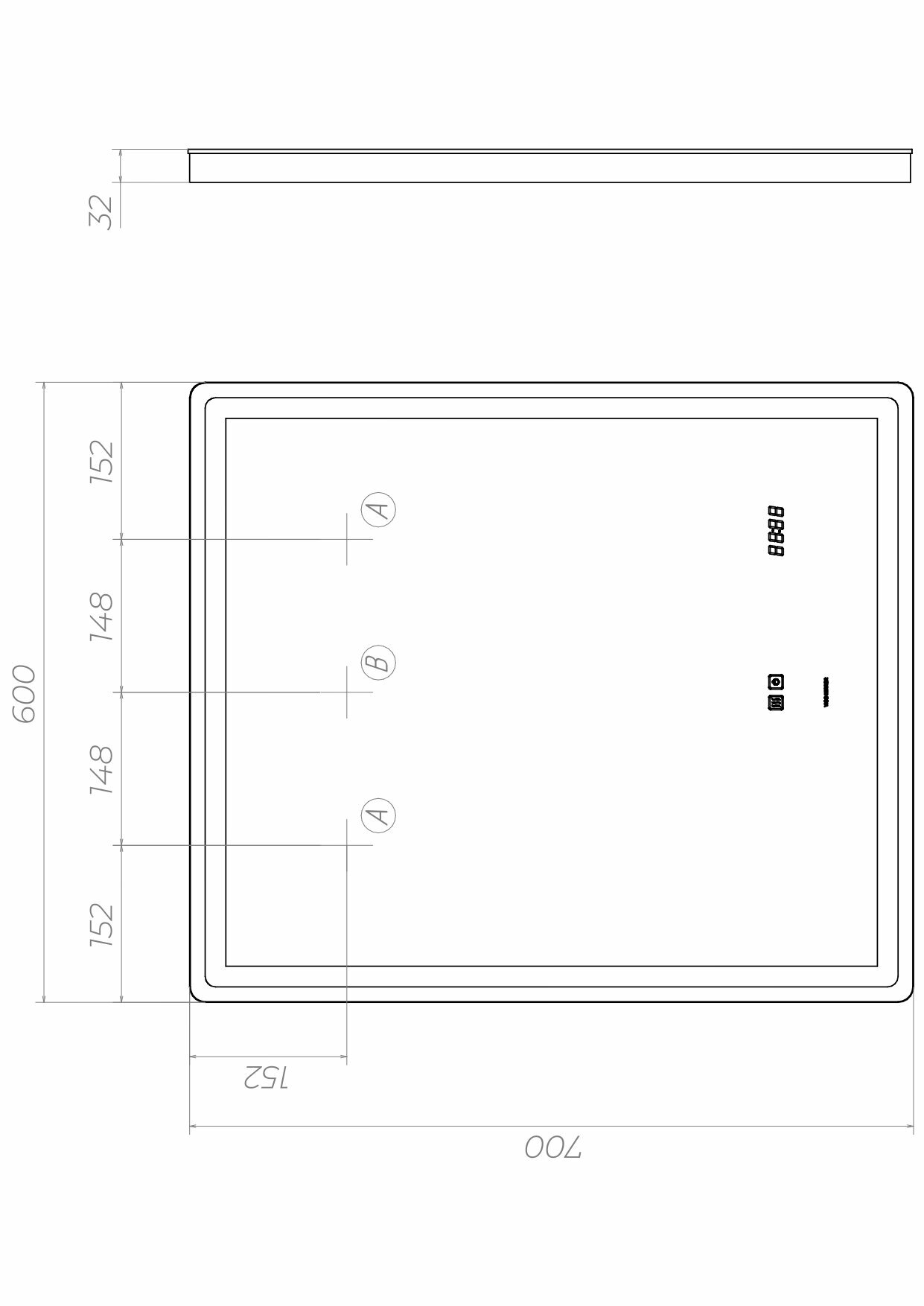 Зеркало с LED-подсветкой, часами и антизапотеванием VIGO GEOMETRY LUXE 700