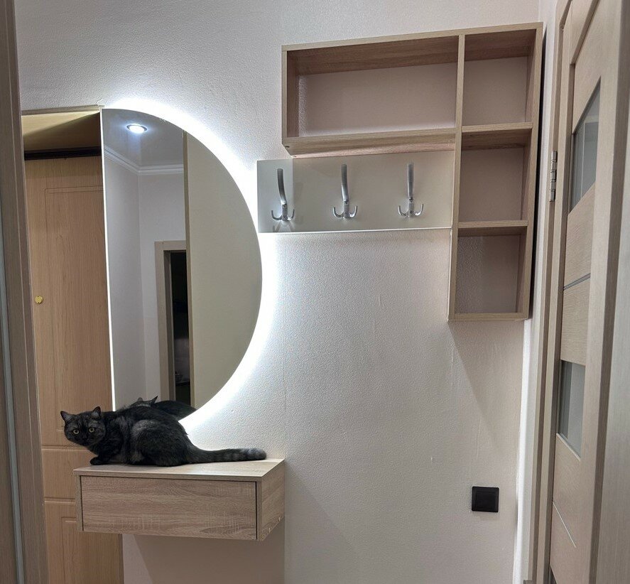 Зеркало с подсветкой полукруглое 100*200см + покраска по периметру (полукруг справа, прямой срез слева)