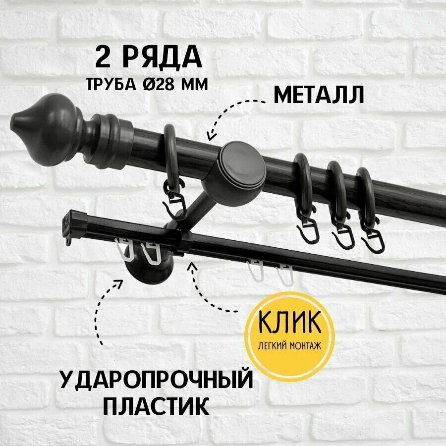 Купить Карниз металлический Delfa Скандинавия, 2-рядный, черный, 300 см