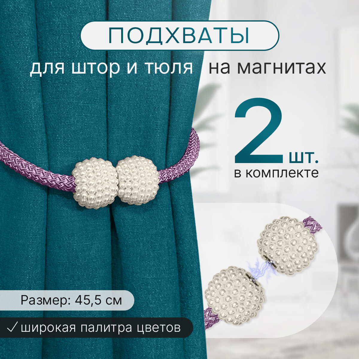 Купить Подхваты для штор на магнитах декоративные / Магнитный держатель для штор светло-фиолетовый, 2 шт.