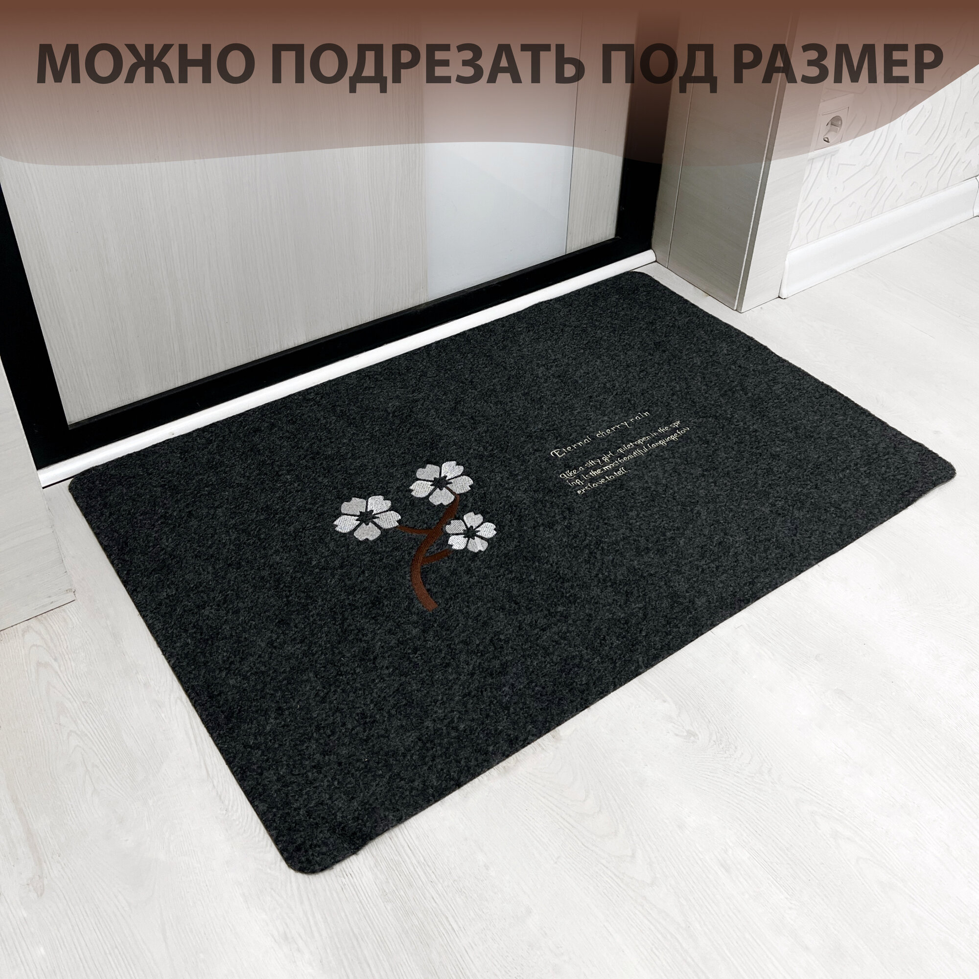 Купить Коврик входной придверный красивый под дверь ворсовый влаго-грязезащитный 60х90 см ребристый черный с цветочком