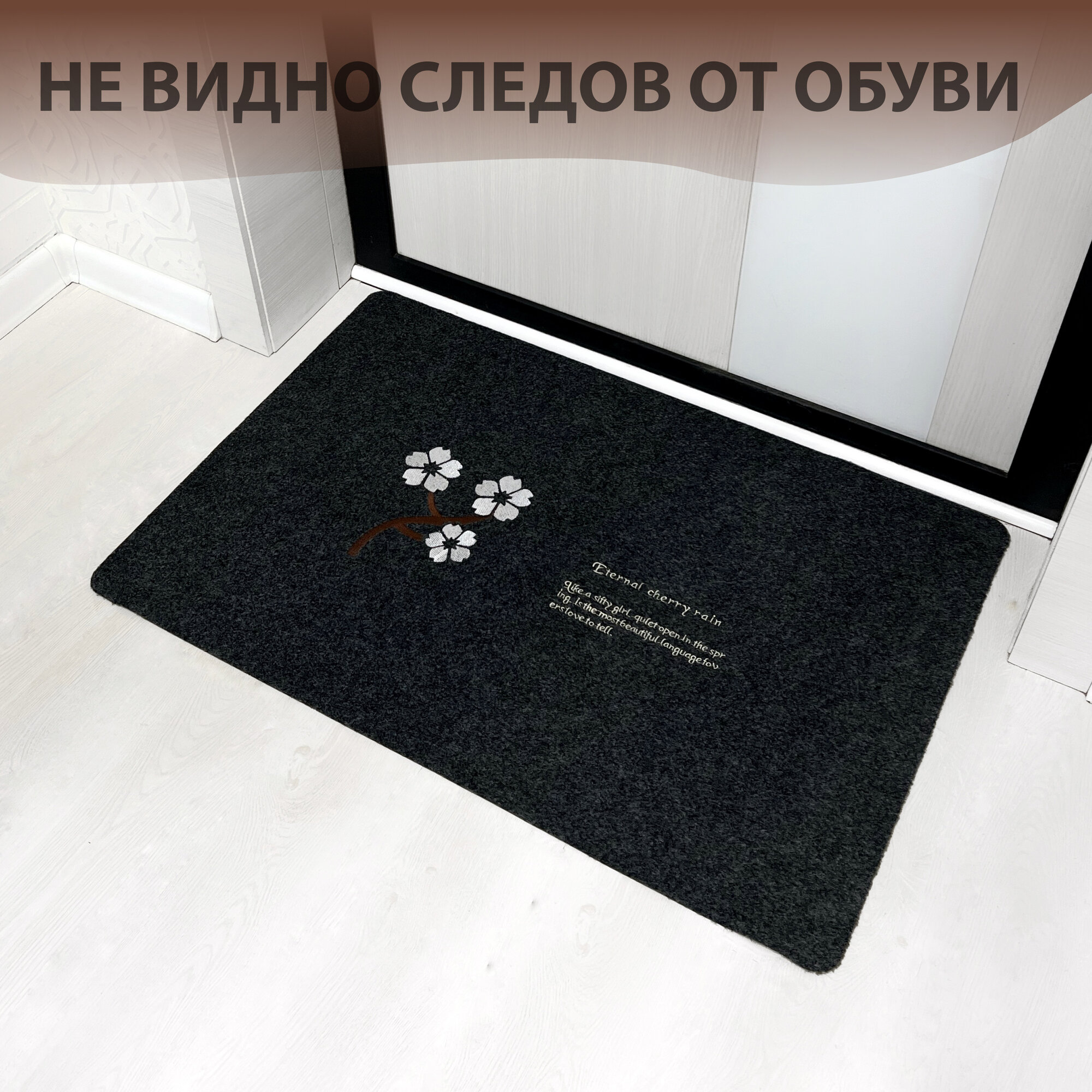 СохранитьКоврик входной придверный красивый под дверь ворсовый влаго-грязезащитный 60х90 см ребристый черный с цветочком интересное: