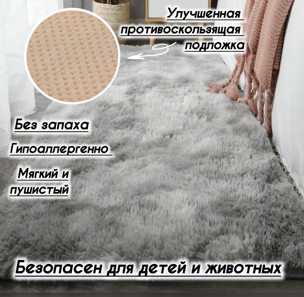 Коврик меховой комнатный прикроватный в гостиную с ворсом серый 60х100 см интересное: