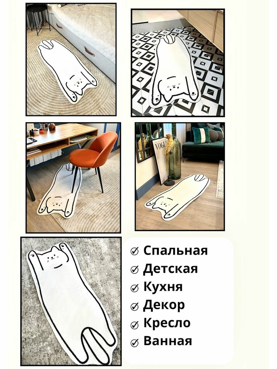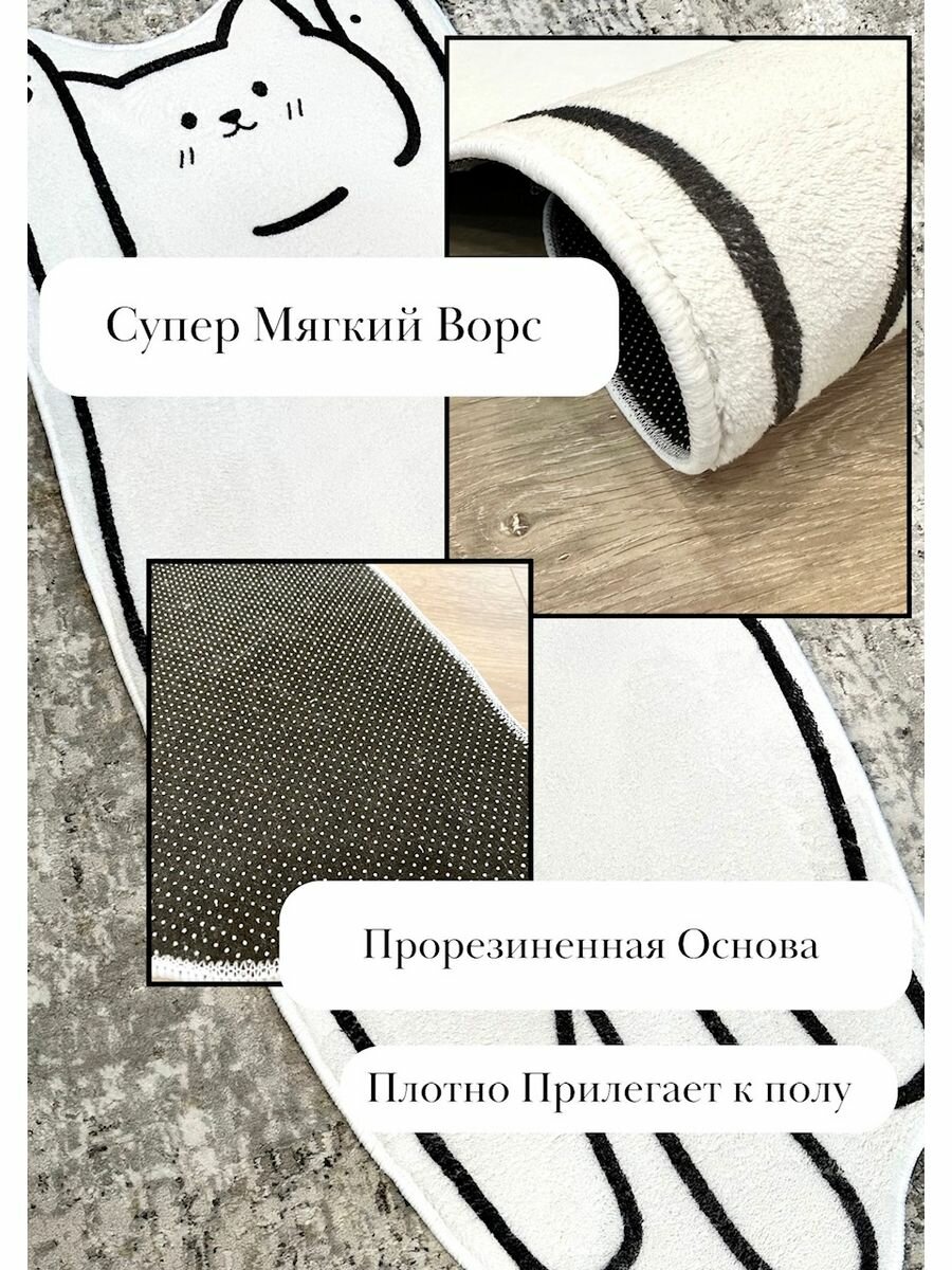 Коврик комнатный белый с ворсом с котом 50x120 см интересное: