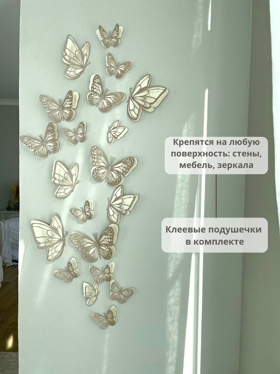 Декоративные бабочки для декора стен, 3D, двухслойные, 20шт. фотозона