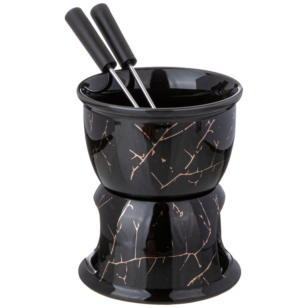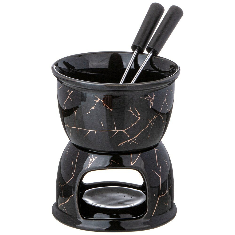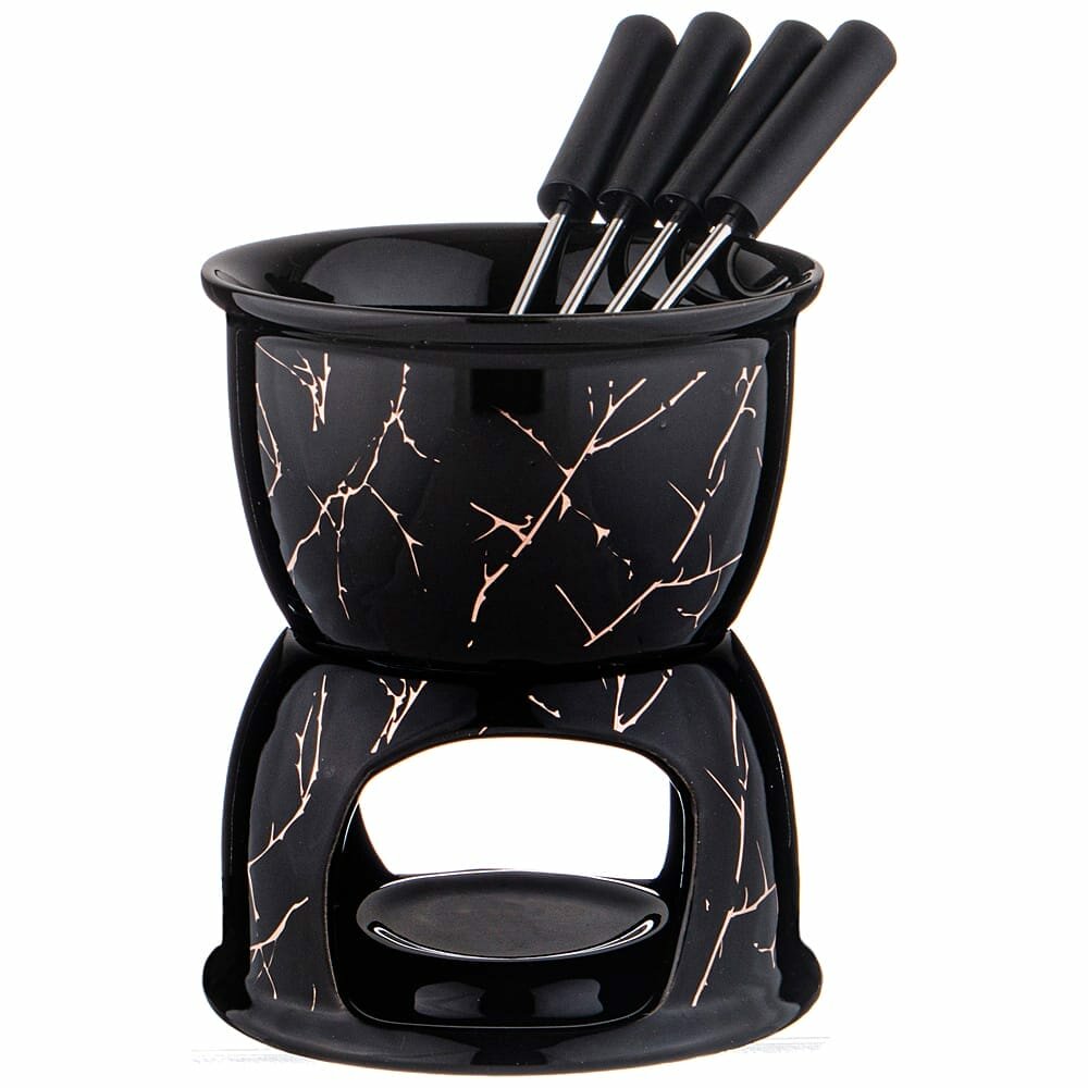 Купить Набор для фондю Lefard / Лефард Золотой Мрамор с утолщенным дном, из жаропрочной керамики, цвет черный с рисунком, 270мл, 6 предметов