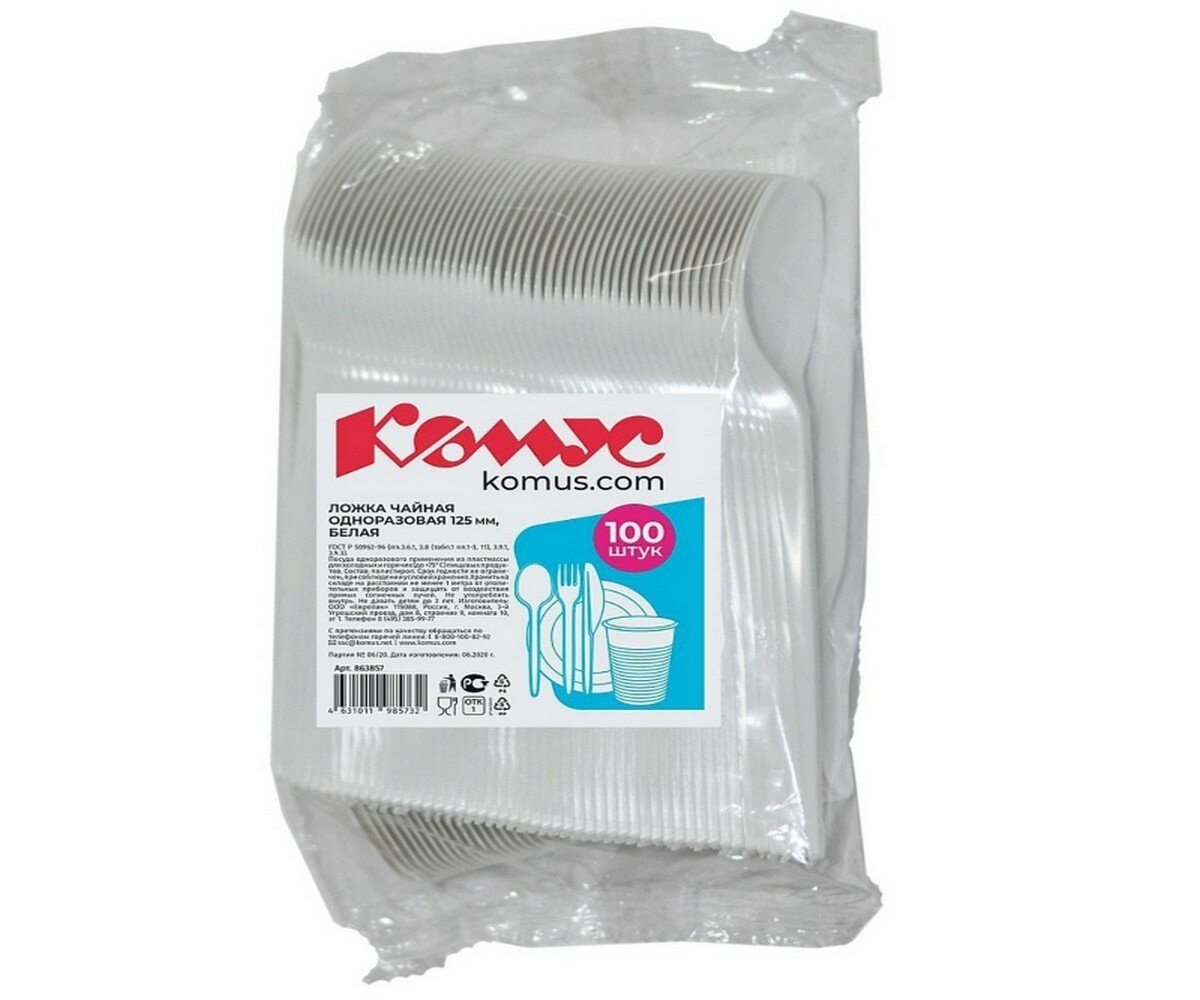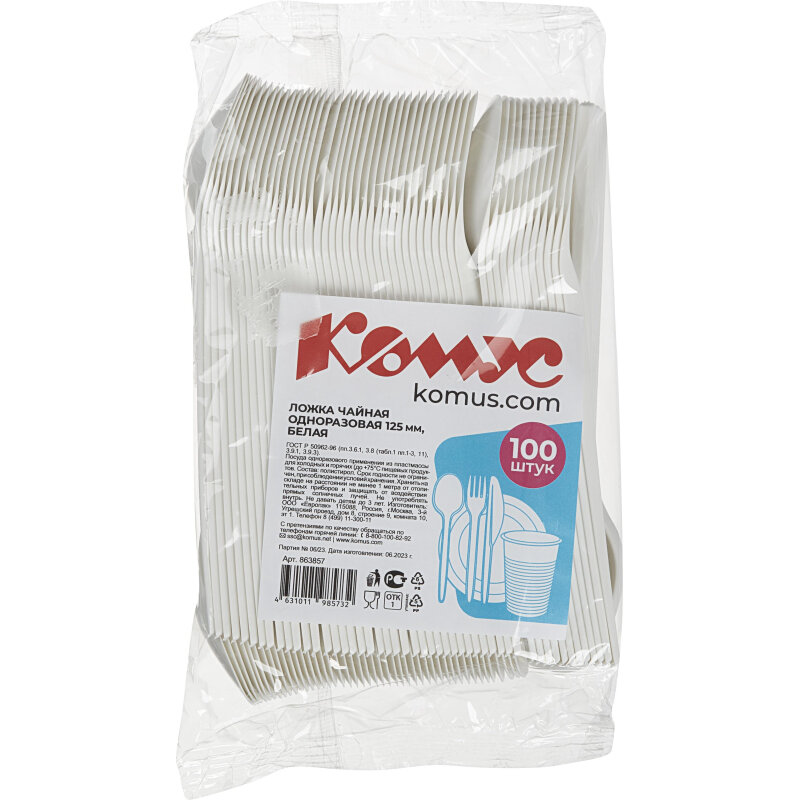 Ложки одноразовые Комус чайные, пластиковые, 100 штук, белые